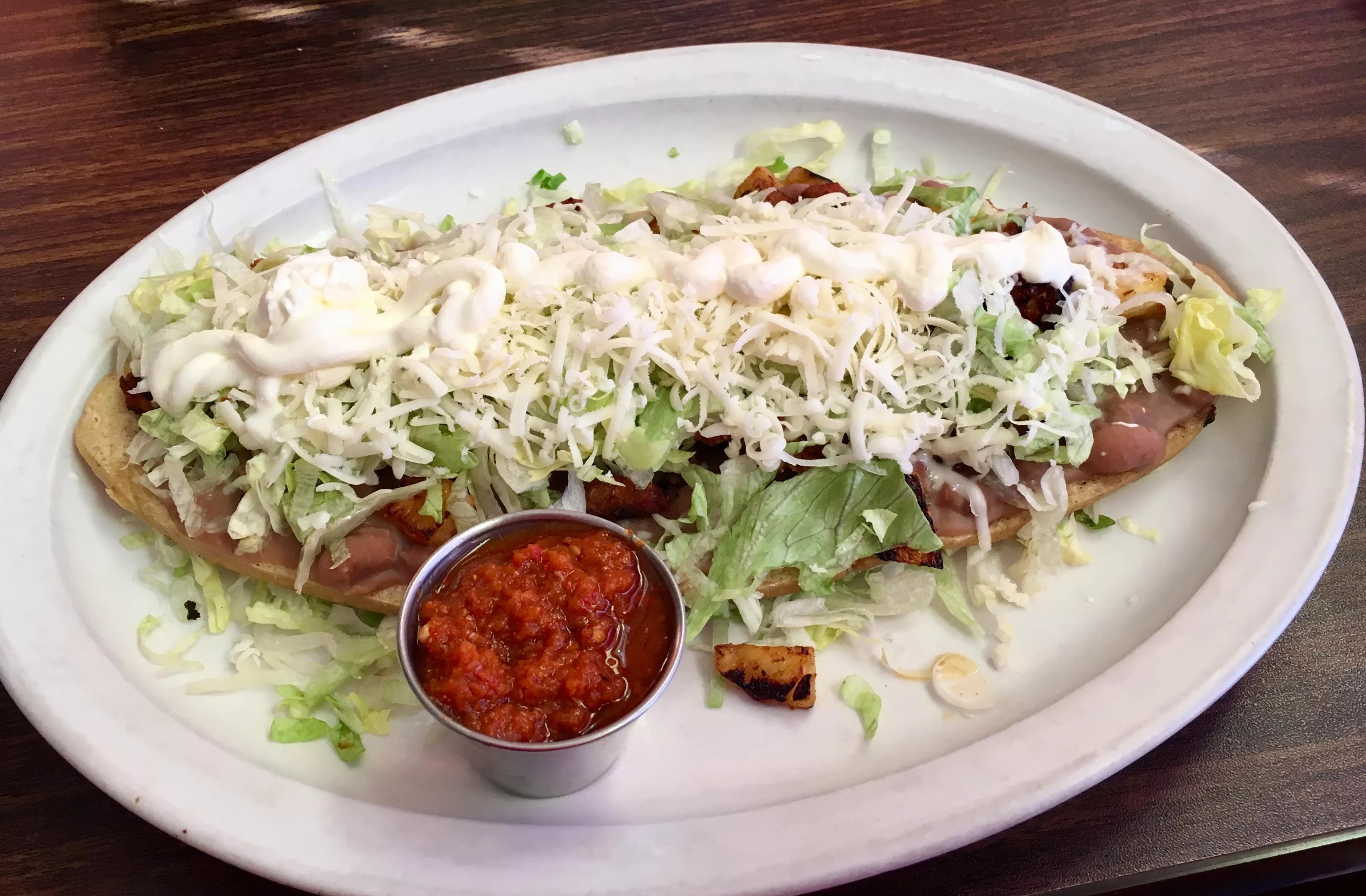 Las Fajitas tops its huaraches with a choice of carne asada, chorizo, carne al pastor, carnitas or pollo, along with refried beans, lettuce and Monterey Jack cheese. A thick shoelace of sour cream is strewn across the top, and the whole thing is served with a side of thick, smoke-forward, crimson salsa. For my first bite, I took just a small sampling of the fried masa base; it was warm and crispy on top, with an inner consistency that was soft and flexible. Yes, it resembled a tostada, but the flavor and character were more reminiscent of a Mexican torta. I proceeded to try the pork, pineapple and salsa toppings individually, which on their own were nothing exciting. But when I assembled a forkful that combined all the elements into one bite, the result was a wallop of flavor, to which my tastebuds repeatedly responded, “Come at me, bro.”