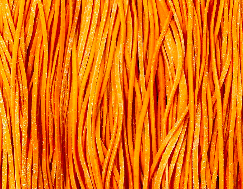 Pro tip for pasta lovers: Follow Restaurant Olivia chef and owner Ty Leon for glimpses of his eye-catching handmade pasta like this chitarra (basically square-cut spaghettti) made with Jimmy Nardello peppers.