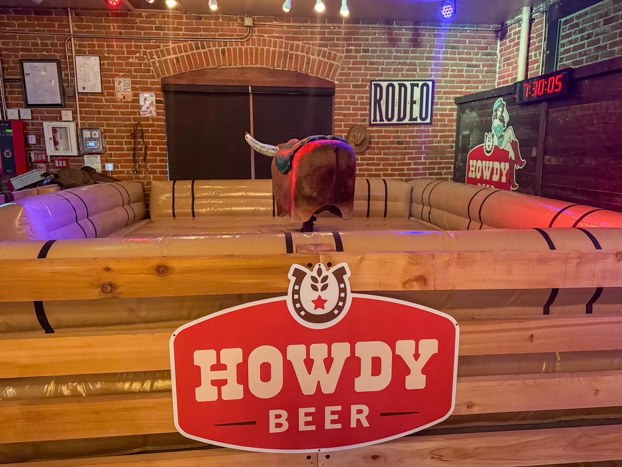 The bar has a mechanical bull.