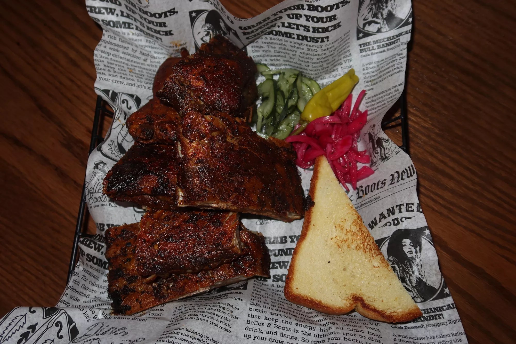 The food menu is barbecue-centric and includes ribs, sandwiches and more.