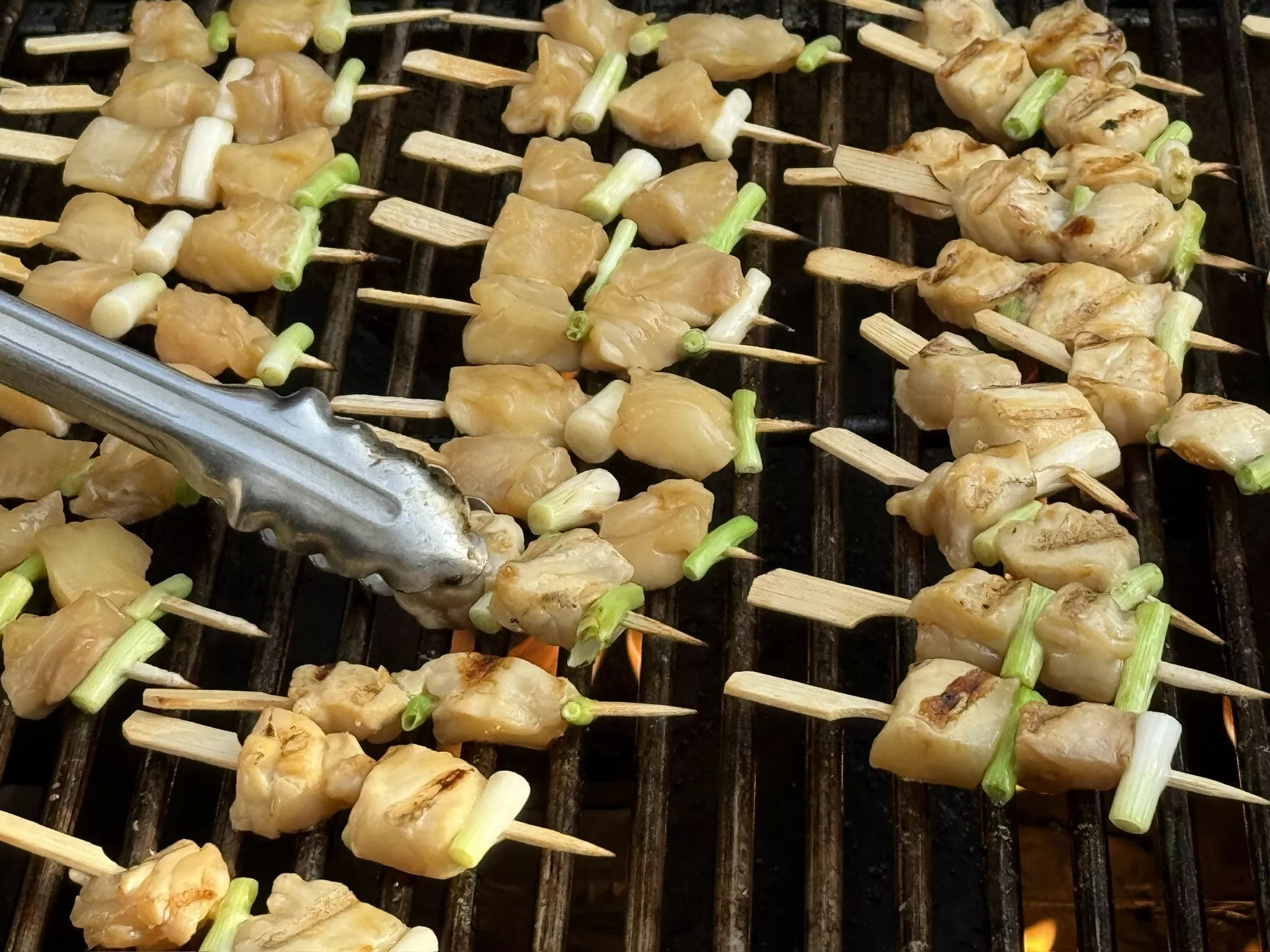 Call Me Pearl, a bar featuring oysters and caviar right in McGregor Square, had an outdoor station grilling what it called “yakitori” (a Japanese term for grilled chicken) skewers of teriyaki halibut with pickled radish and cucumber salad, the crispness of the vegetables adding some snap to the meaty white flesh of the fish.