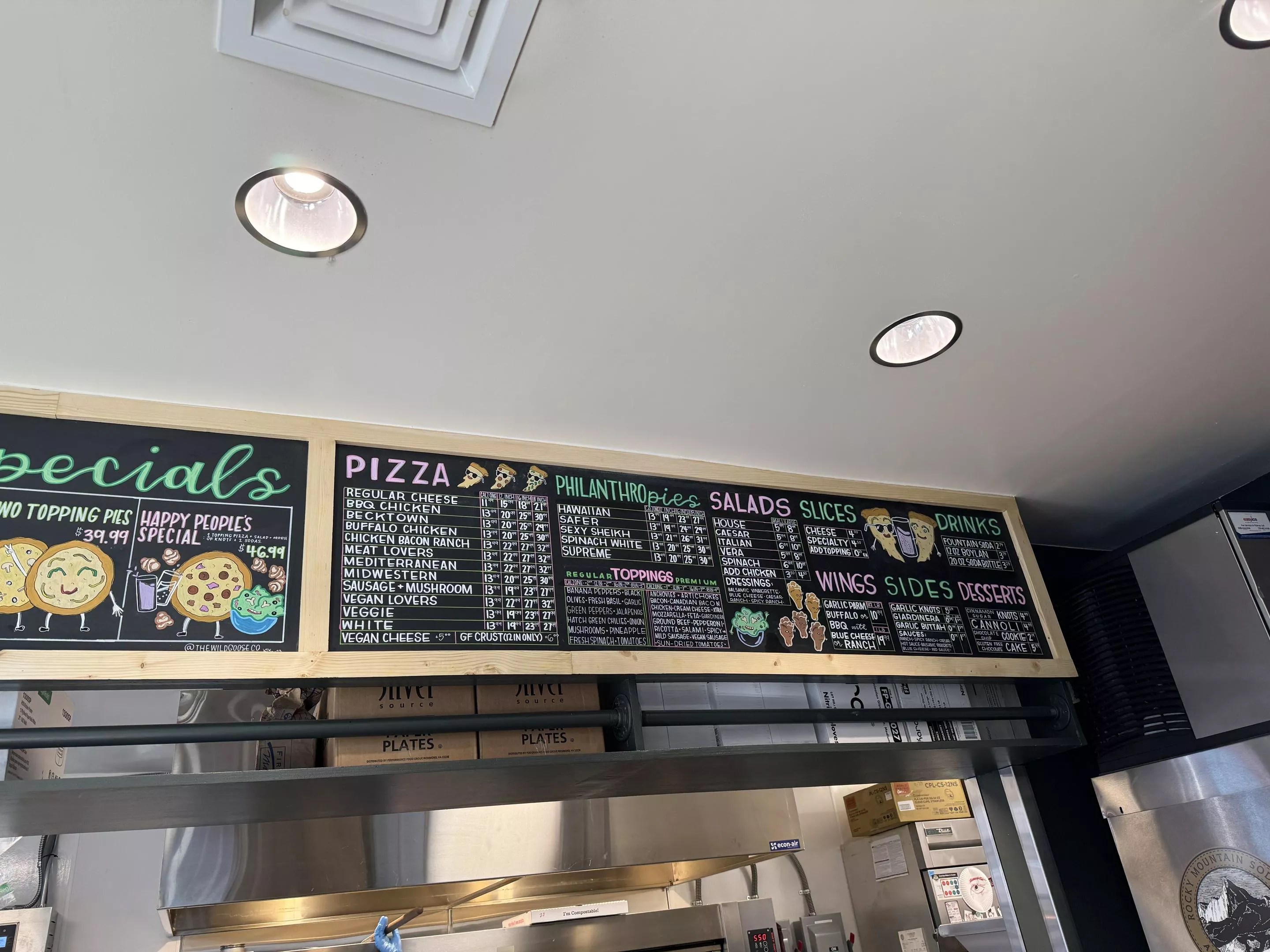 Sometimes an eye-catching menu isn’t printed on paper at all. The chalkboard menu at Sexy Pizza’s new Capitol Hill location uses a neat, orderly grid design with a healthy smattering of funky pizza-themed characters and emoticons designed by Becca Waugh, the owner of Sleepy Panther. She started working for Sexy Pizza seven years ago, after answering an open call on Facebook for a chalkboard artist.