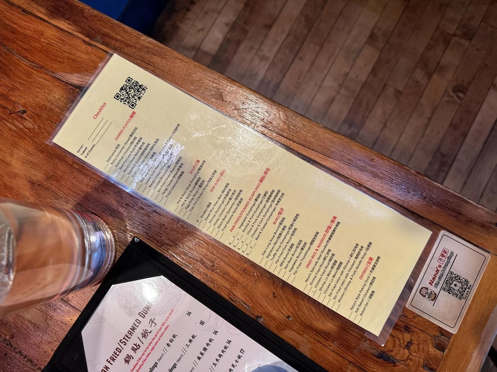Nana’s has laminated ordering sheets plus a QR with access to descriptions and photos of dishes.