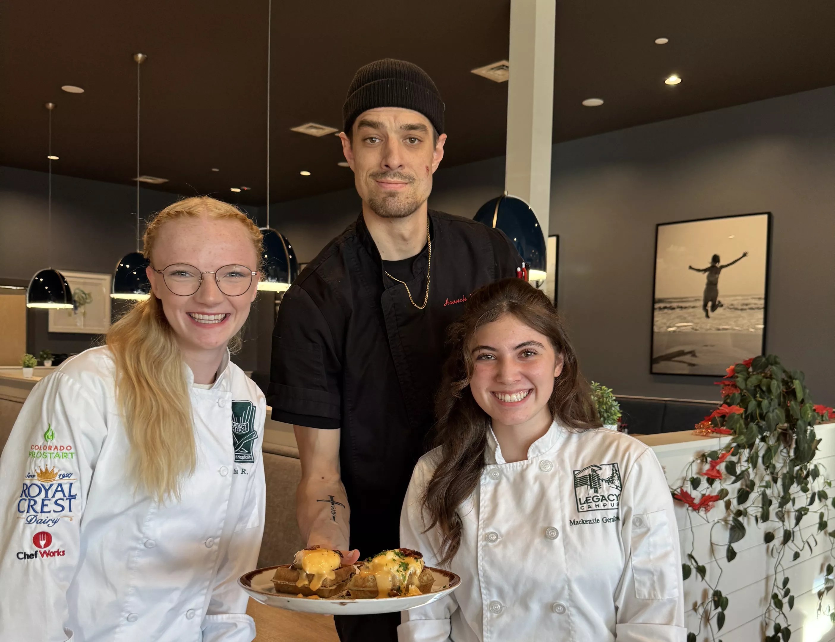 For the 2024 Reinventing Brunch Competition, students teamed up in pairs and put their own spin on classic egg dishes. Of the 28 teams and over sixty participating students, the winning dish was the Campfire Benedict, created by Mackenzie Gershkovich and Taia Rasmussen from the DCSD Legacy Campus in Lone Tree. The dish features blue corn waffles, bacon, hot honey, poached eggs and chipotle Hollandaise. It will be featured on the menu at all four locations of local brunch chain Morning Story from December 9 to January 19, and one dollar from each order sold will go to the Colorado Restaurant Foundation.