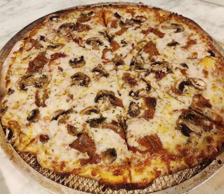 The shop owner says he took some time to learn about pizza and purchased some used equipment to supplement what was already in the kitchen at Mr. Lucky’s. He notes that making hot sandwiches isn’t much different from making pizza, and that once he dialed in the dough and sauce recipes, the rest was just relying on good-quality toppings. He was already buying nearly all the ingredients he needed for toppings, and only had to source Italian sausage, mushrooms and the right kind of mozzarella (in addition to the dough and sauce ingredients).