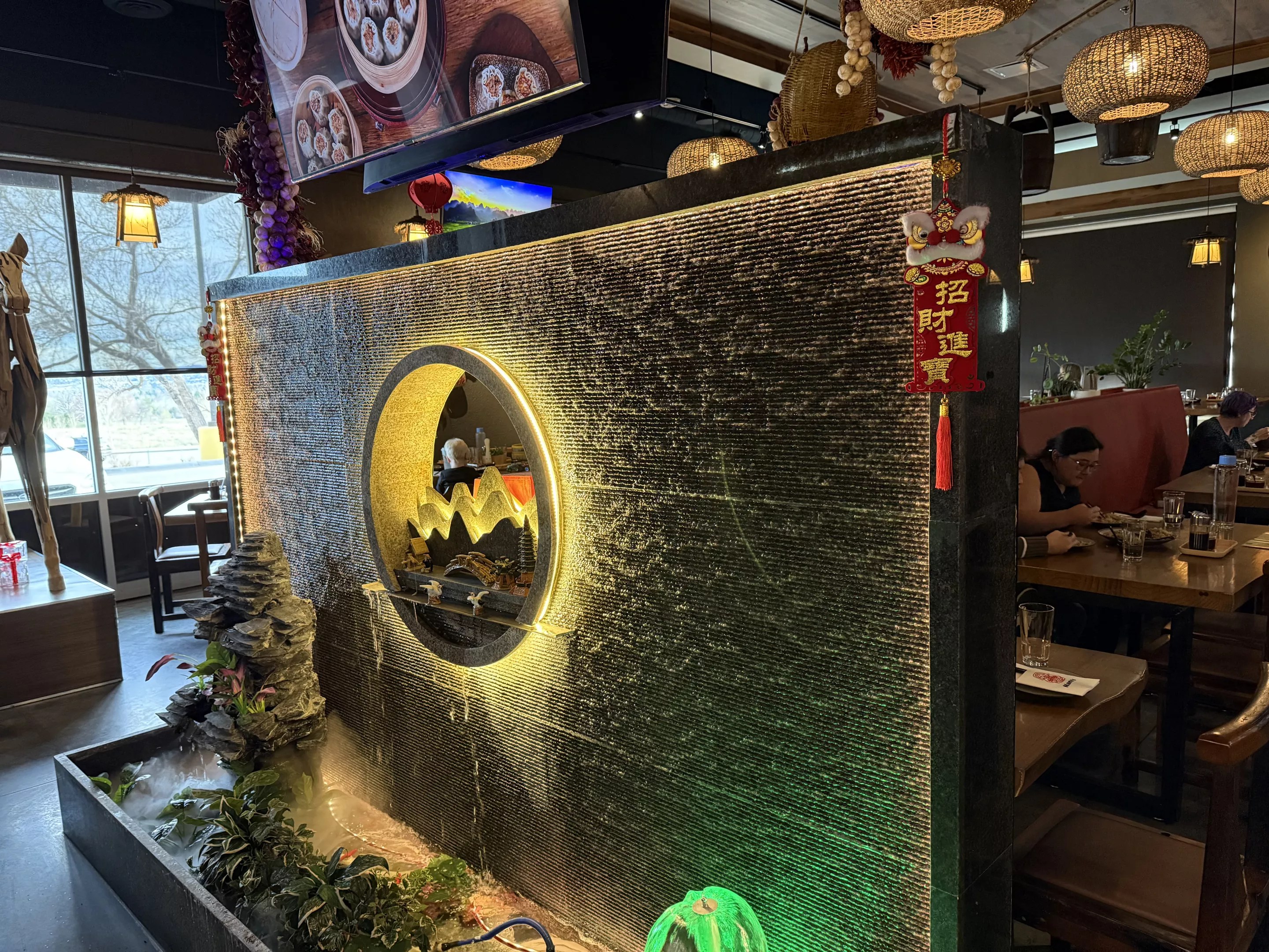 Rounding out the decor are a tasteful water feature, rattan pendant lights, and wall decorations reminiscent of items you might find in an old Chinese village. It’s all very modern yet rooted in tradition, careful to walk the line between comfortable and not too fancy.