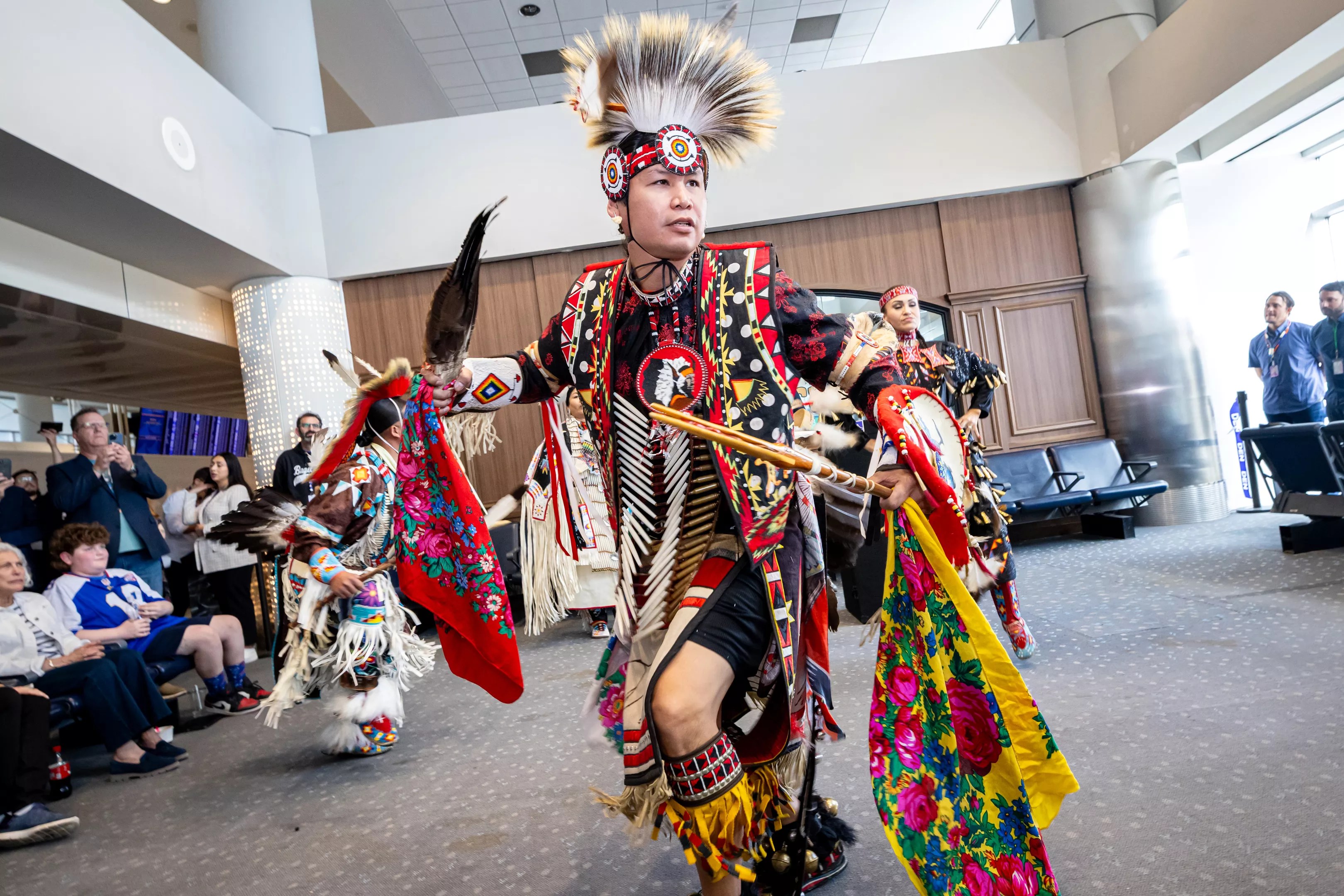 To celebrate, members of North Dakota’s MHA Nation and Oklahoma’s Cheyenne and Cherokee tribes hosted a live performance at the airport with traditional dancers and drummers. Two singers also shared a blessing that honored the traditional Native land on which the airport was built, Jacob says, as well as everyone involved in Tocabe’s opening.