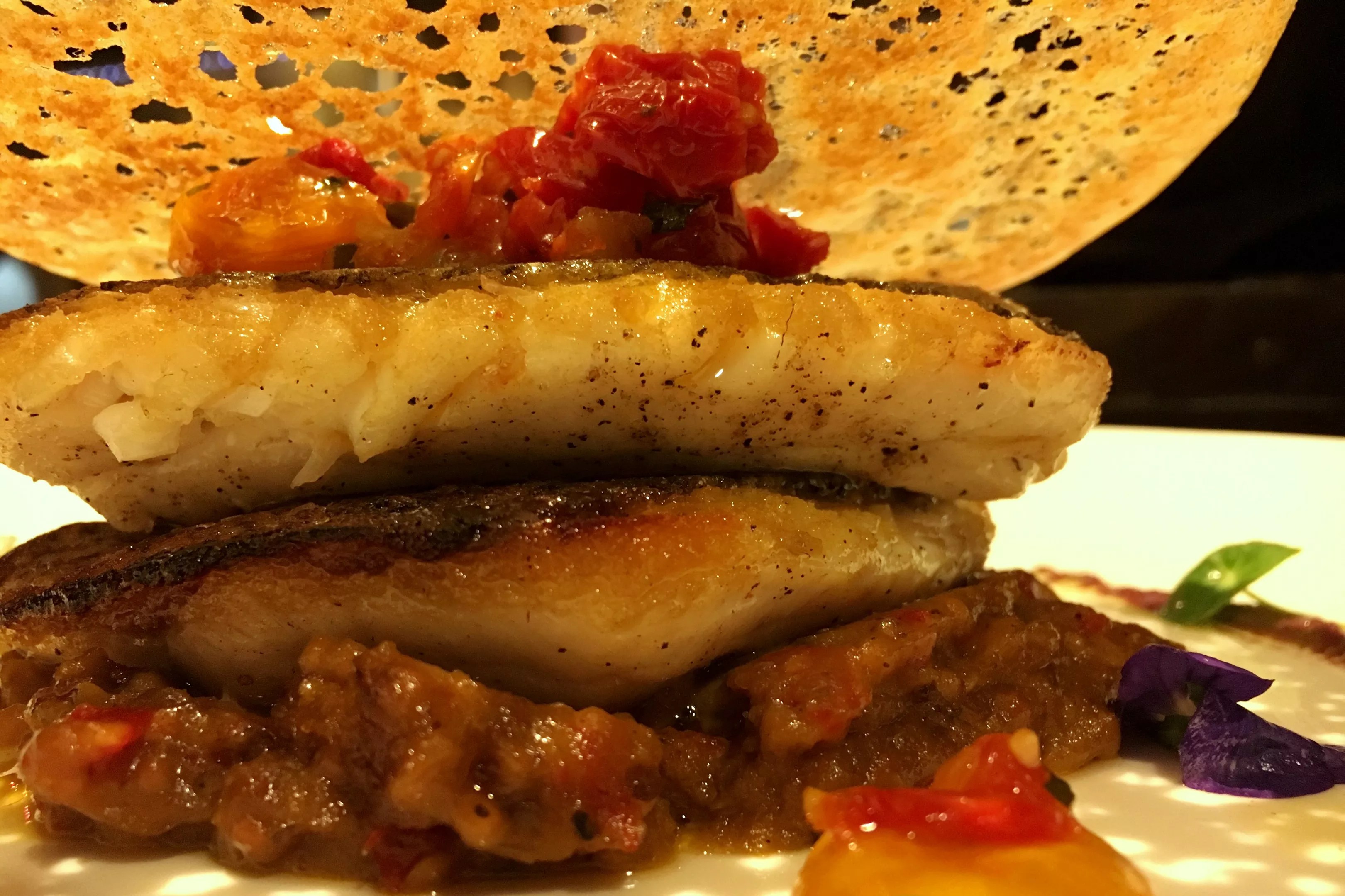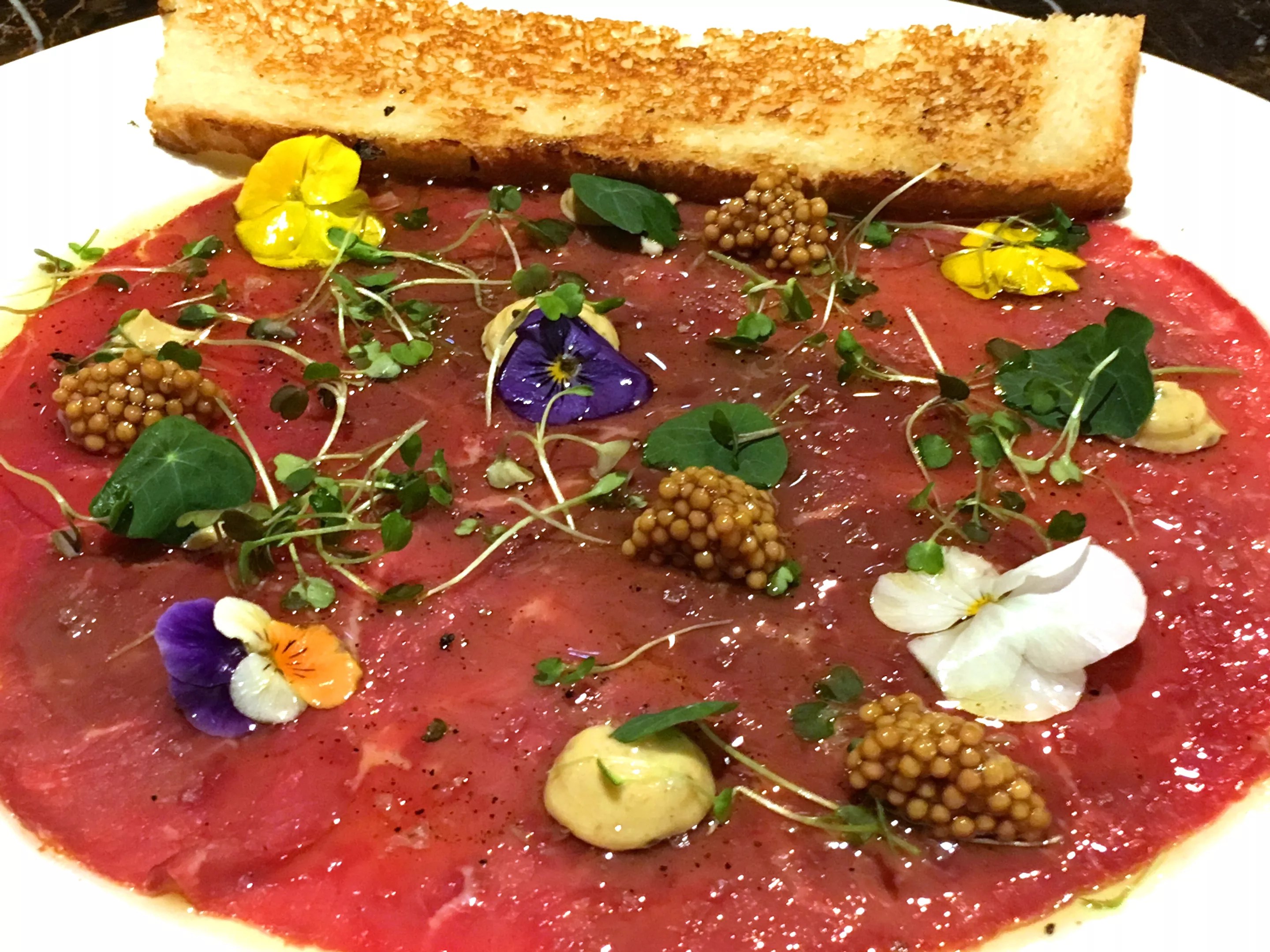 Carpaccio is a staple at upscale Italian eateries; Lebas adds his personal touch with spoonfuls of pickled mustard seeds and black-garlic aioli. And for an entree like grilled pesce fresco (a fillet of whatever’s market-fresh), a touch of whimsy is added with a lacy topper of whole-wheat crisp.