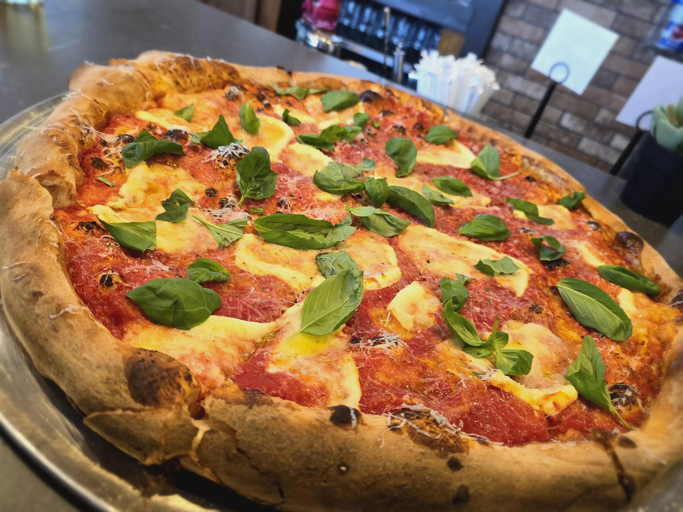 The Margherita pie at Little Arthur’s includes eight giant slices — plenty to share.