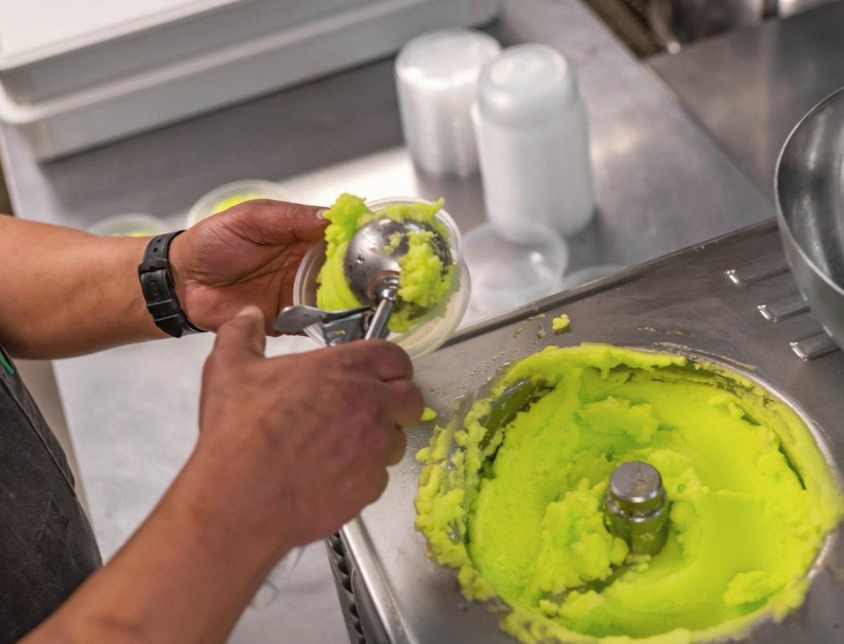 Italian water ice, however, isn’t quite as trendy as those Detroit pies. Dascoli grew up on Long Island eating Italian ice, and the lack of places offering it in the Denver area inspired him to add it to his menu. The treat is made with three simple ingredients: sugar, water and fruit. He offers a variety of flavors such as blue raspberry, chocoa latte, coconut, grape, lemonade, limeade, orange cream, root beer and both black and wild cherry, all of which are available in three sizes.
