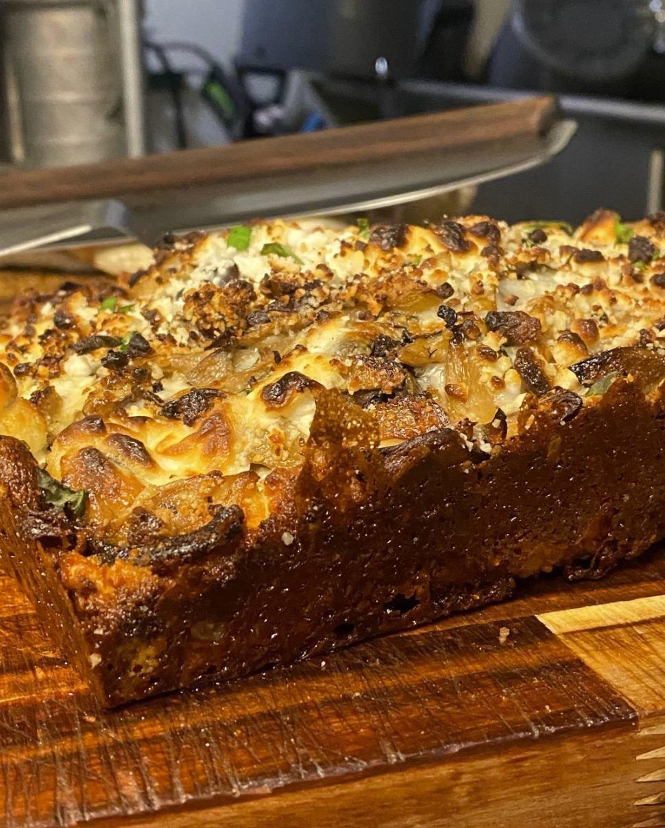 Back to the pizza at hand: It not only contains the aforementioned local mushrooms, but also a list of cheeses that runs the gamut: locally sourced goat cheese crumbles, brick cheese, aged provolone, sharp white cheddar, ricotta, buffalo milk mozzarella, fresh mozzarella and Parmegiano-Reggiano. There’s a certain creamy richness from all those cheeses making this truly a decadent and filling pie.