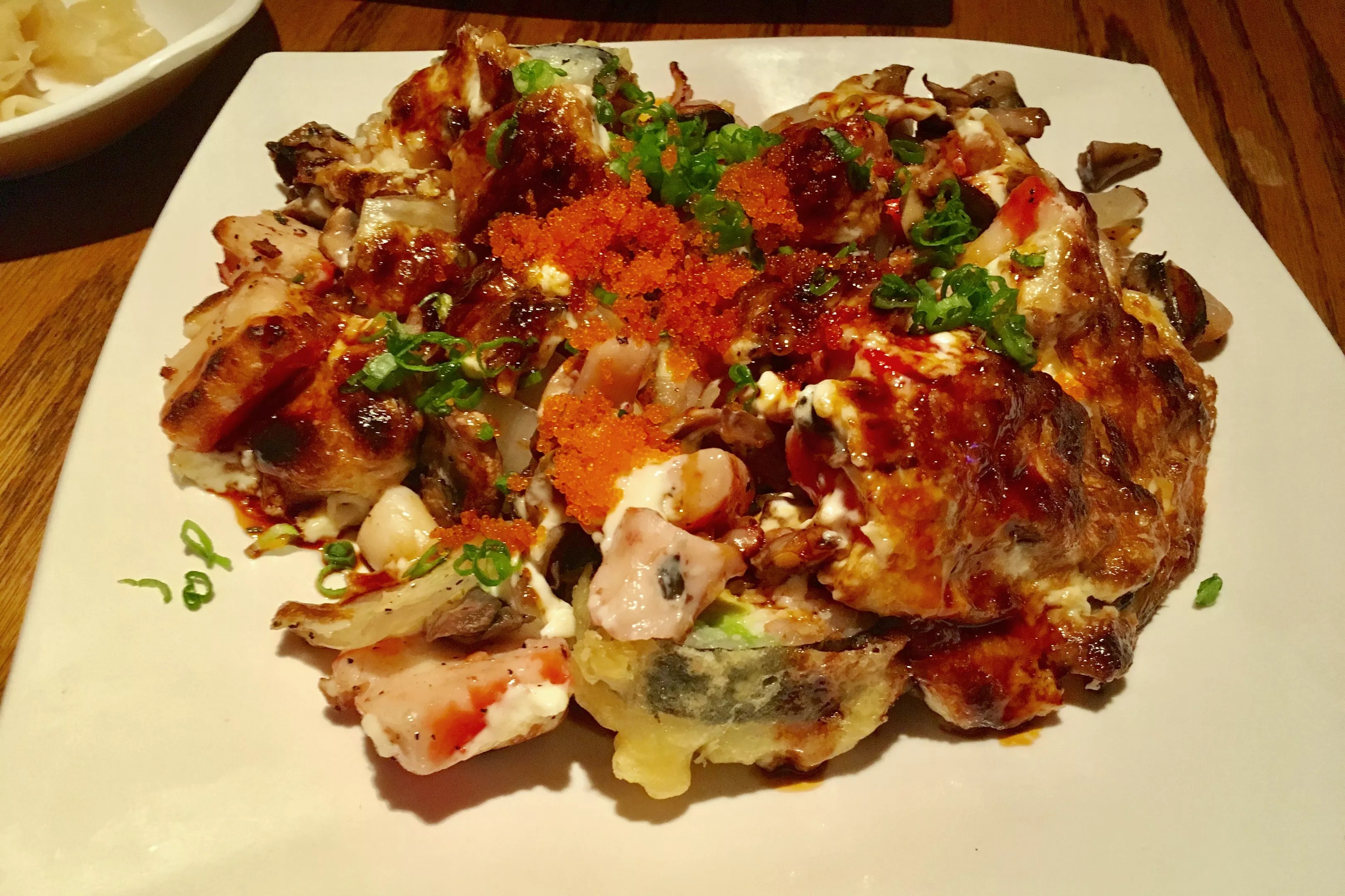 She was grossly underestimating my love of mayonnaise but cautioning me fairly, since most people turn away the Havana roll when it arrives at their table. That’s understandable: instead of receiving a neat, tidy sushi roll, you are presented with a pile of brown, white and orange sludge that doesn’t have the slightest resemblance to the precise and artistic platings typical of sushi counters. The roll can be off-putting to a person expecting traditional rice, seaweed and fish and who doesn’t share my fondness of mayo.