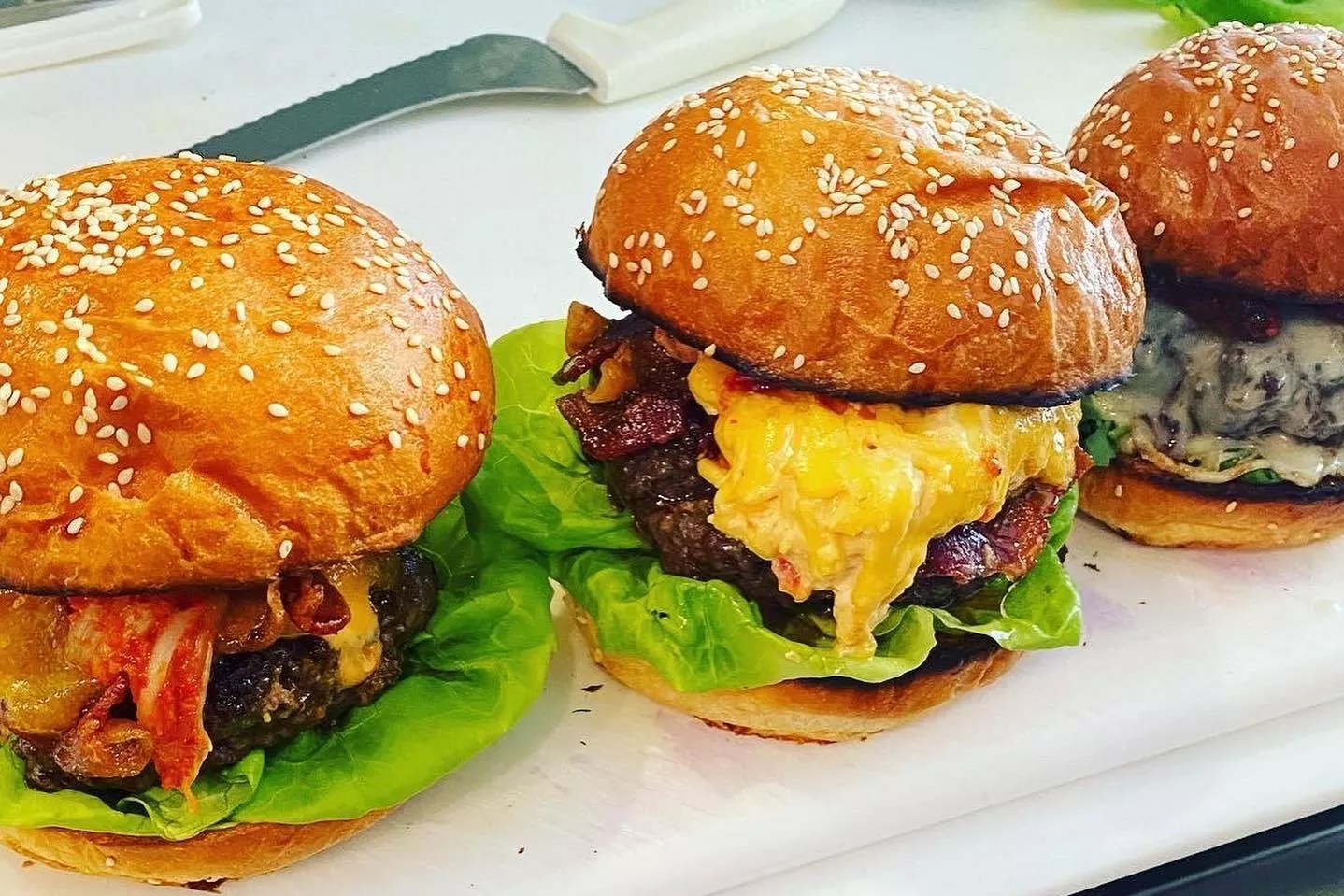 These Tessa burgers were served with KREAM kimchi and housemade buns at a recent pop-up; burgers are now part of the nightly menu.
