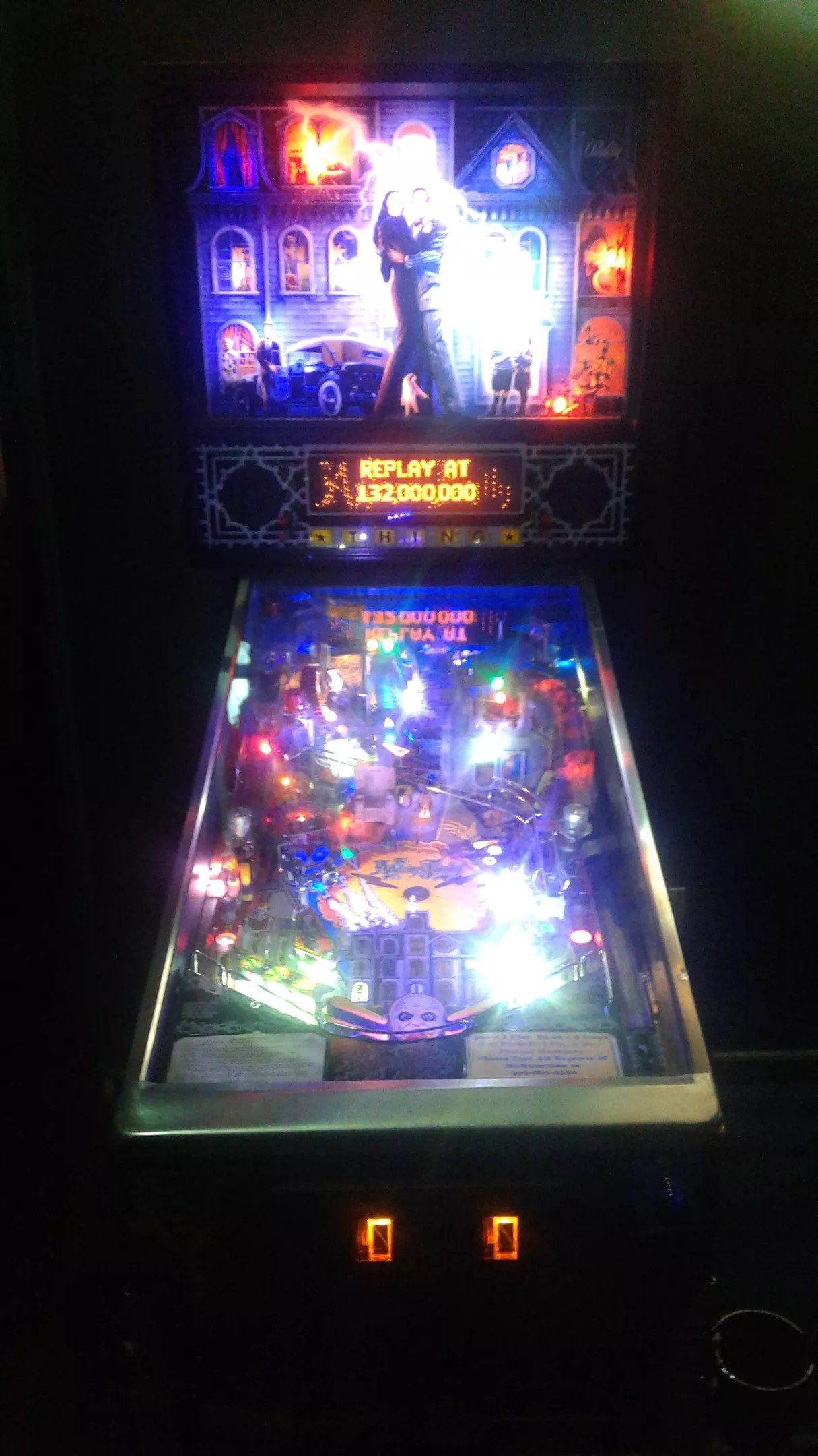 An Addams Family pinball machine adds to the scene at Tooey’s.