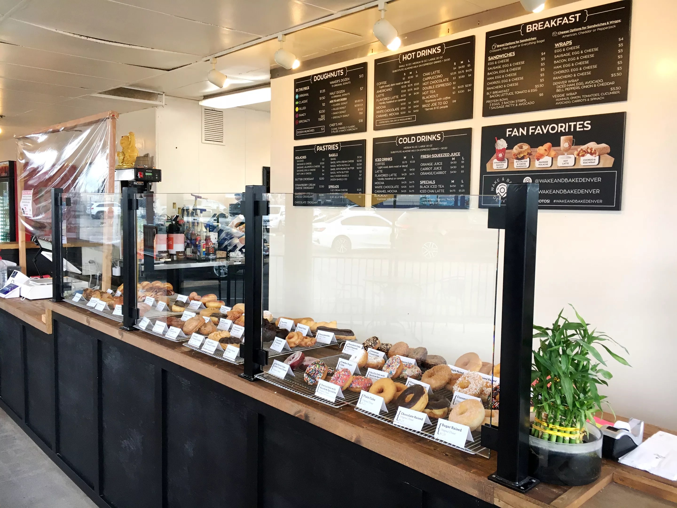 Lopez purchased the Winchell’s location in January 2019 with an agreement to run it as it was for a year and a half before making any changes. “We’re from Reno, Nevada, and my wife’s parents own a doughnut shop there,” the Wake & Bake owner explains. “But when we moved to Denver, I wanted to get the lay of the land first.”