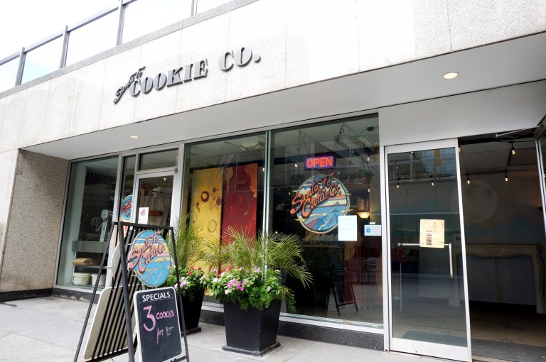 The formula that works for Santa Fe Cookie Co., a hole-in-the-wall off the 16th Street Mall, probably isn’t one that would work for any other bakery in the middle of downtown Denver: Customers enter at one end of a shop, drop a dollar into a giant plastic jug, retrieve a small paper bag filled with two fresh-from-the-oven cookies and exit out the other end. There’s no greeting, no register, no hemming-and-hawing or custom orders holding up the line. Patrons can choose from bags filled with a single flavor or ones with a mixed selection. Depending on the day, you might also see cupcakes, brownies or muffins, all available for a song. It’s one of the best deals in town – and the goods are so tasty, you’ll find respectable-looking businesspeople sneaking into an alley to make a purchase.