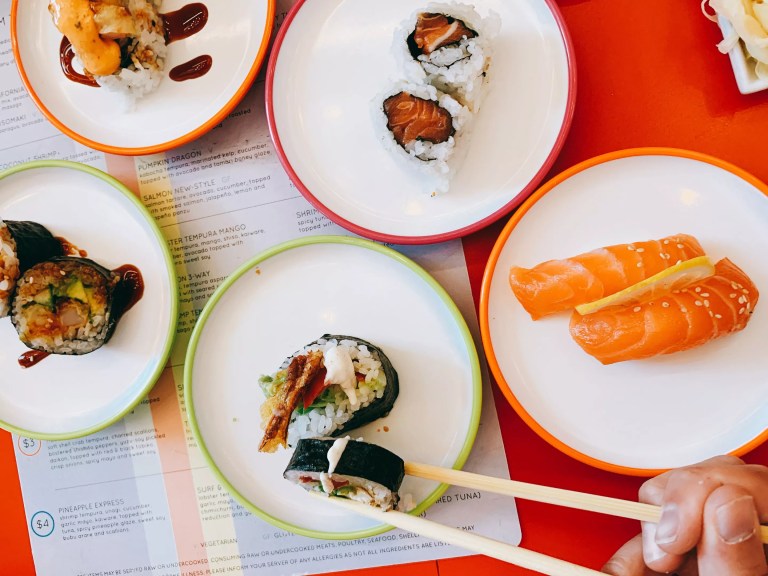 Chef Jeff Osaka brought something unique to River North with Sushi-Rama in December 2015: conveyor-belt sushi (kaiten-zushi). The tiny space seats just under fifty, but it’s worth the sometimes daunting wait to nab a spot next to the conveyor belt, which carries Fiesta-colored plates around the dining room. Those plates bear just a few bites of Sushi-Rama’s rolls and daily specials, giving diners the opportunity to sample the majority of the excellent menu; we love the vegetarian pumpkin dragon roll (Japanese pumpkin tempura and marinated kelp finished with avocado and honey), as well as the briny, crunchy Ocean Salad packed with marinated squid, seaweed, and kiwi. If you’re not into the ultimate self-service, fret not: Table service is available, and you can always order from the menu.