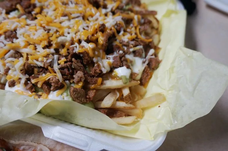 A former Chubby’s spinoff reopened in 2017 as Tacos Los Compas, this spot offers an assortment of burritos, tacos, enchiladas, tortas and – most important – carne asada fries, a late-night must for after-hours diners. The hefty order of loaded fries will test the limits of a plastic takeout bag, so carry that precious cargo with both hands if you must remove it from the safety of your car before consuming.