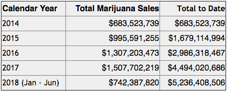 Despite the previous monthly dips, the DOR says that dispensary sales are still on pace for annual growth. This year, Colorado dispensaries sold over $742 million of products by the end of June – nearly $21 million more than the first sixth months of 2017.