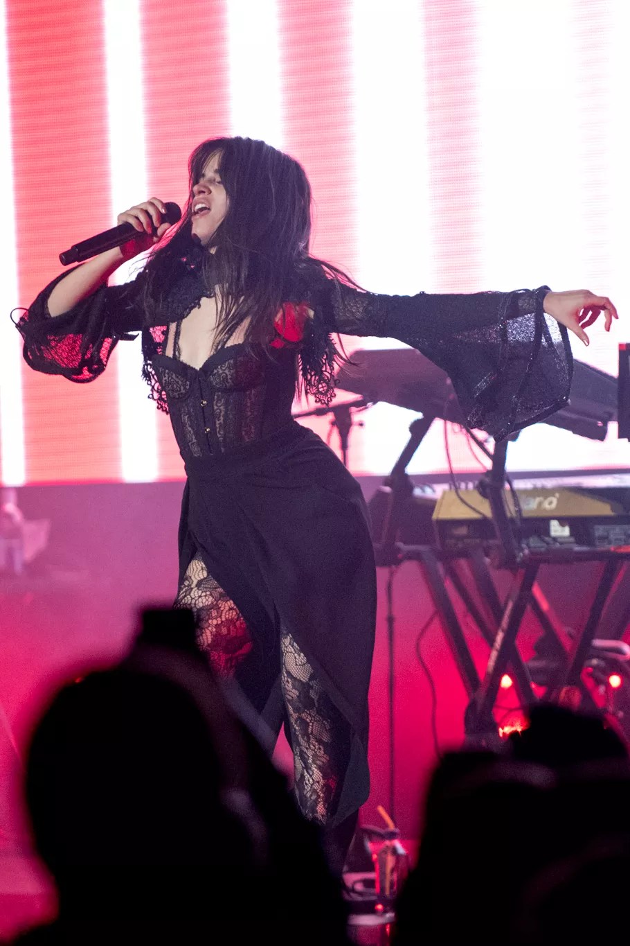 For one of Cabello’s saltier songs, “Real Friends,” in which she sings about her longing for friends who won’t let her down, she invited fans wearing “Real Friends”-inspired T-shirts to the front for an impromptu singing contest. People flooded the stage, and ultimately, Cabello picked an eight-year-old girl wearing puffy Mickey Mouse-style ears who was celebrating her birthday as the winner. Fans wept, seeing how sweet Cabello was to the kid. When the girl said it was her first time on a stage, Cabello assured her she was doing great.