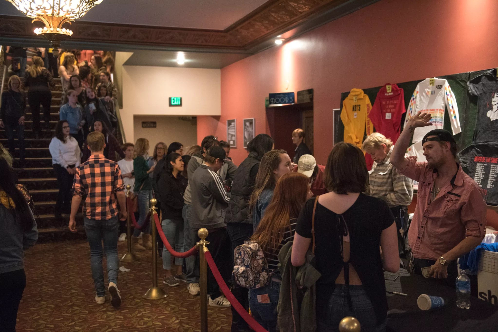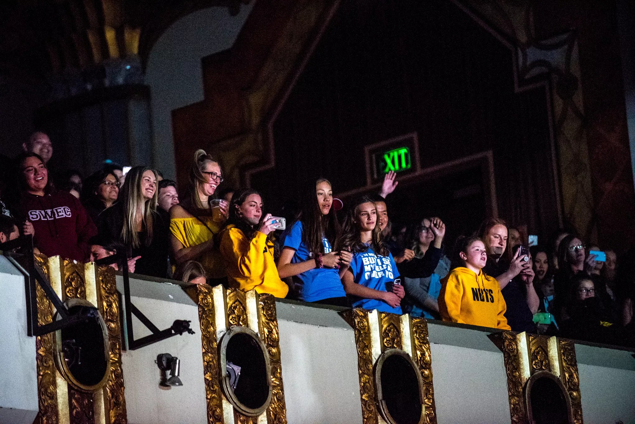 The chairs at the Paramount are painfully close together, offering little in the way of legroom. Next to me sat a massive, gruff young man with a hat pulled over his eyes, giving off a don’t-tread-on-me-militia vibe. He didn’t say hello, even though our bodies were touching. Nobody sat on the other side of him. He was a lone wolf, waiting for the show, and I couldn’t help but worry why he was there, in an ocean of teenagers.