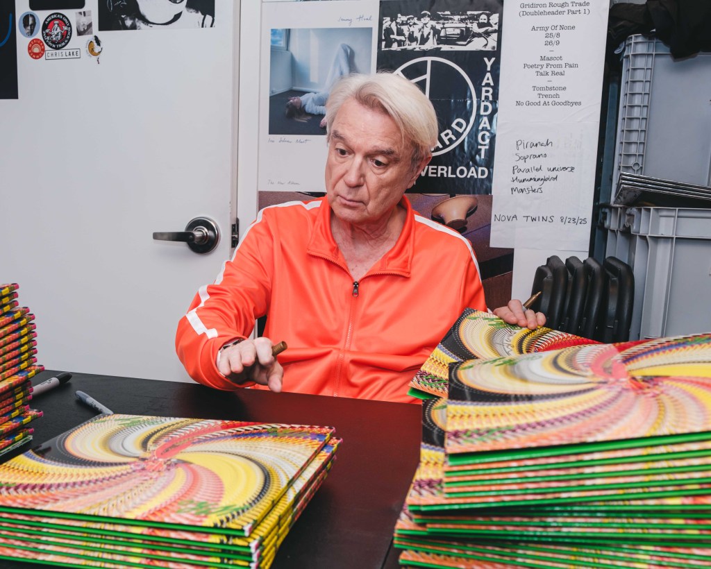 David Byrne signs copies of his new album at Rough Trade Underground in New York City.