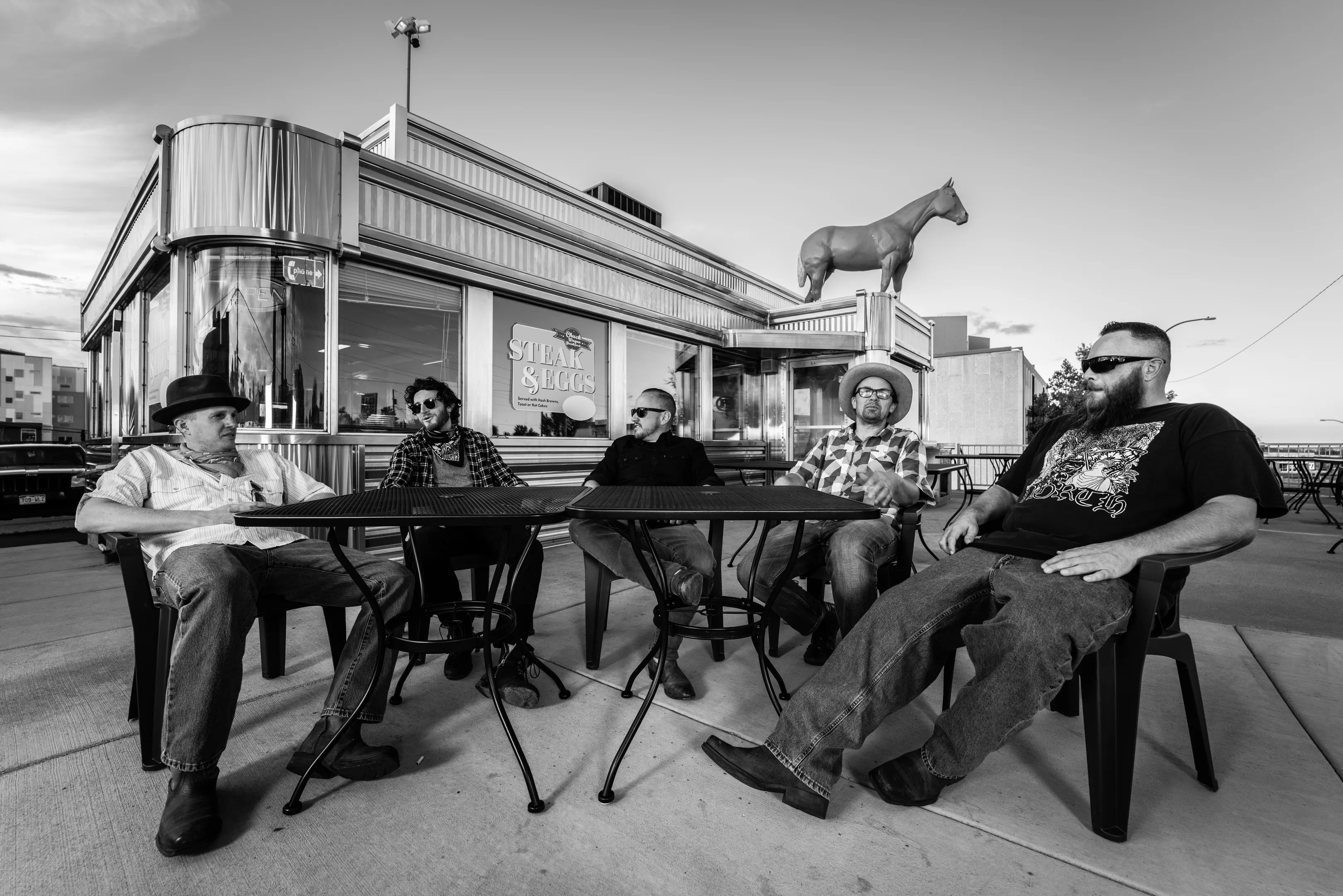 The quip arouses another round of laughs. Rossi takes a sip from his Budweiser bottle. The band’s dynamic and camaraderie are evident. After the conversation turns to the music and how having a pedal steel player makes the group a more legit Western outfit, Pelini maintains the food analogy: “Those guys are the meat and potatoes of the band, and I just try to be a little rosemary,” he says.