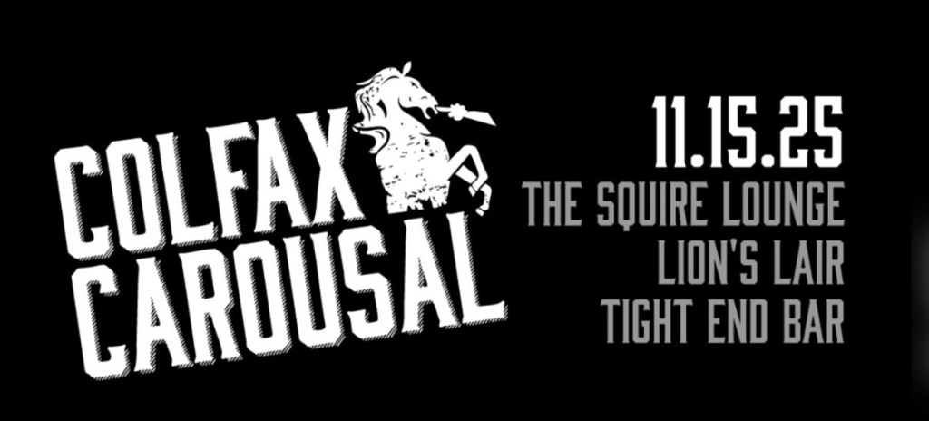 Colfax Carousal Punk Fest, 7 p.m. to 1 a.m. , Saturday, November 15; Lion’s Lair, 2022 East Colfax Avenue; the Squire, 1800 East Colfax Avenue; Tight End, 1501 East Colfax Avenue. Tickets: $15 – $30.