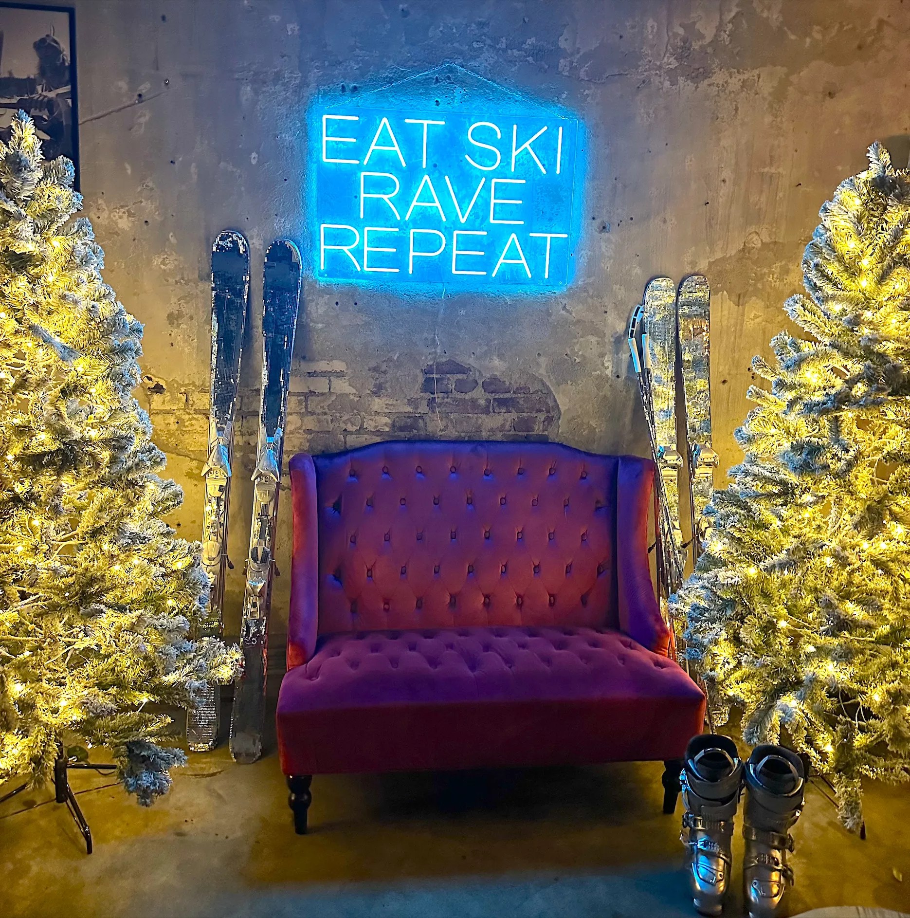 The space is meant to reflect that intersection where raves and ski bums meet. “It was so fun to decorate!” says Campbell, adding that there will also be a new, après-ski-themed cocktail menu with spiked hot chocolate, a winter spritz and a chocolate espresso martini as a finishing touch to the immersive experience.