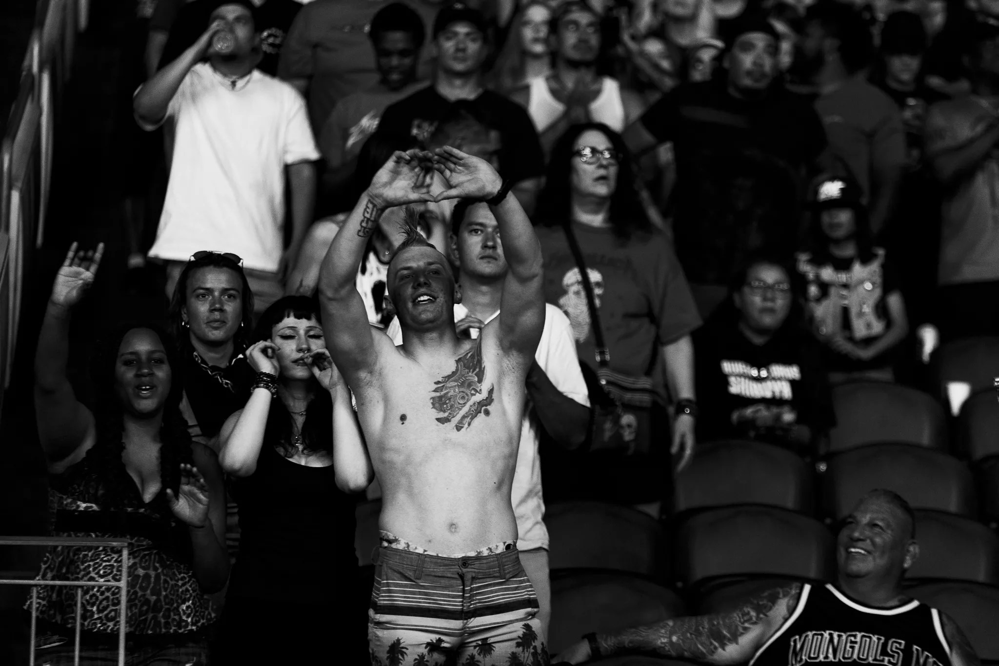 Openers Ice Nine Kills and Limp Bizkit warmed up the audience properly. Limp Bizkit brought all the dad vibes. (We’re not referencing the aging Gen Xers and Millennials who make up most of the group’s fanbase nowadays, but the first song.) As one of the biggest nu-metal acts of the new millennium, Limp Bizkit wasted no time in taking everyone back to Y2K, playing six songs from its watershed 2000 record, Chocolate Starfish and the Hot Dog Flavored Water. Frontman Fred Durst pulled a fan wearing a backwards red Yankees hat on stage for an impromptu duet during “Full Nelson” (her mouth wrote a check her ass definitely cashed). That was followed by “Hot Dog” (Durst pointed out another Limp Bizkit die-hard dressed up as a hot dog raging in the snake pit), “My Way,” “My Generation,” “Rollin’ (Air Raid Vehicle)” and “Take a Look Around” (Durst dedicated the Mission: Impossible 2 track to Tom Cruise, the lead of the 2000 action thriller).