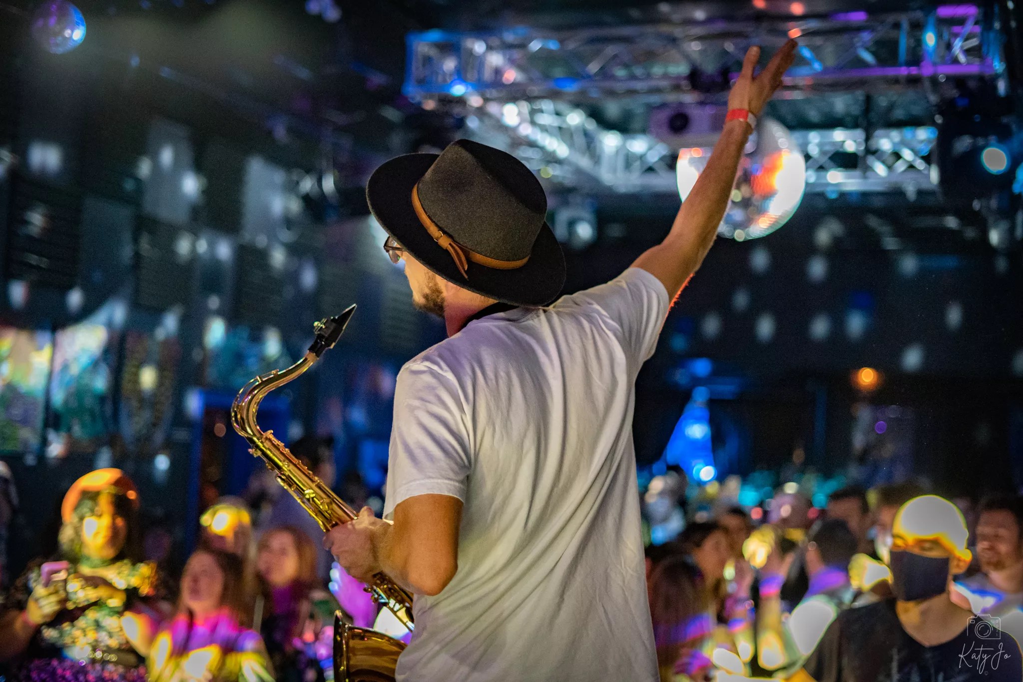 For Theis, it isn’t just about making music, but making a lasting, positive change. His expanding fan base makes his work more impactful; people are starting to recognize him now, he says. One sushi chef offered him a free meal while he was eating out with his wife and friends; people congratulate him on his sobriety while he’s passing out fliers for his shows on the street. And yes, he still does that old-school marketing, on top of creating some popular videos in which he walks around RiNo with his saxophone and plays part of a song, offering $5 to those who correctly guess its name.