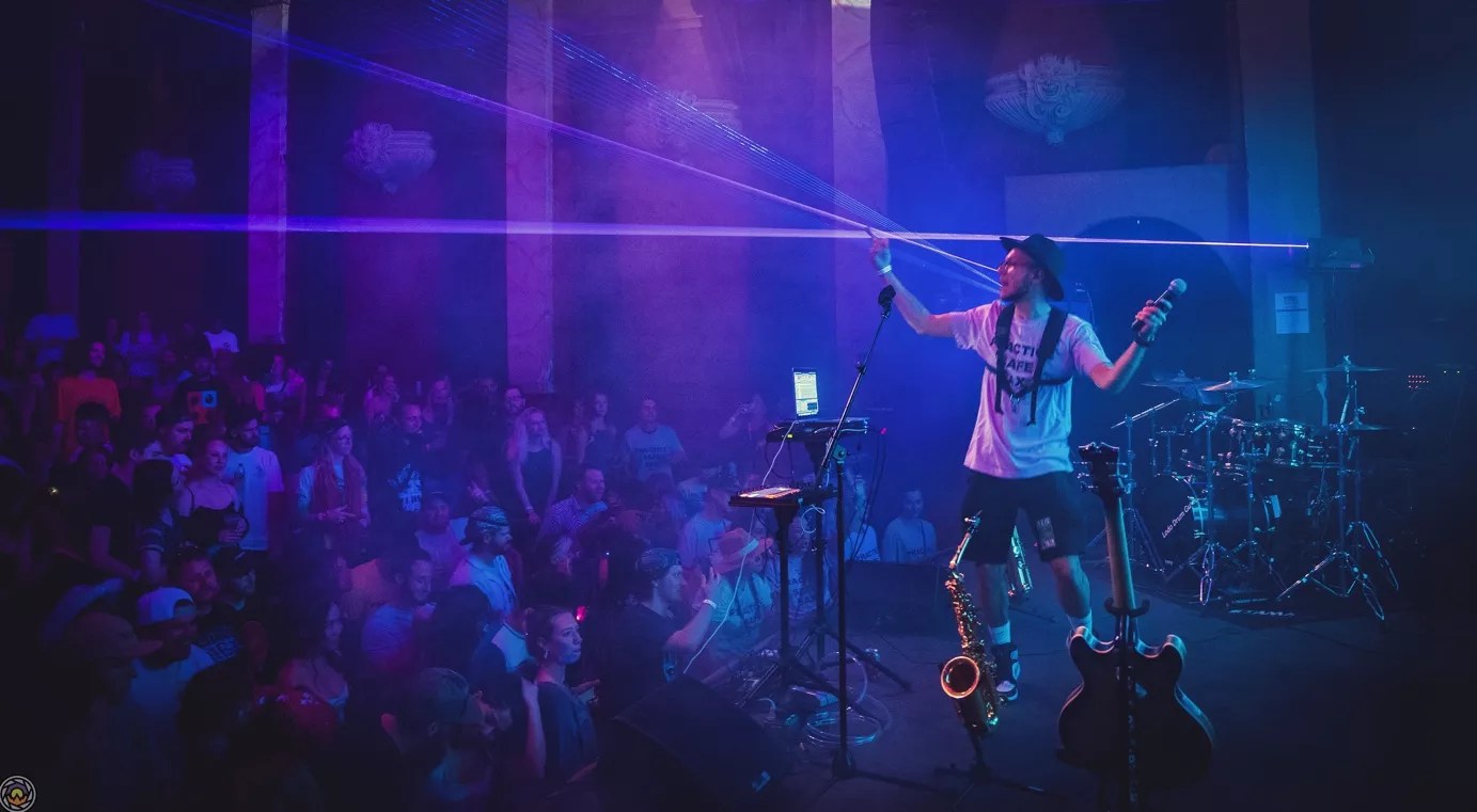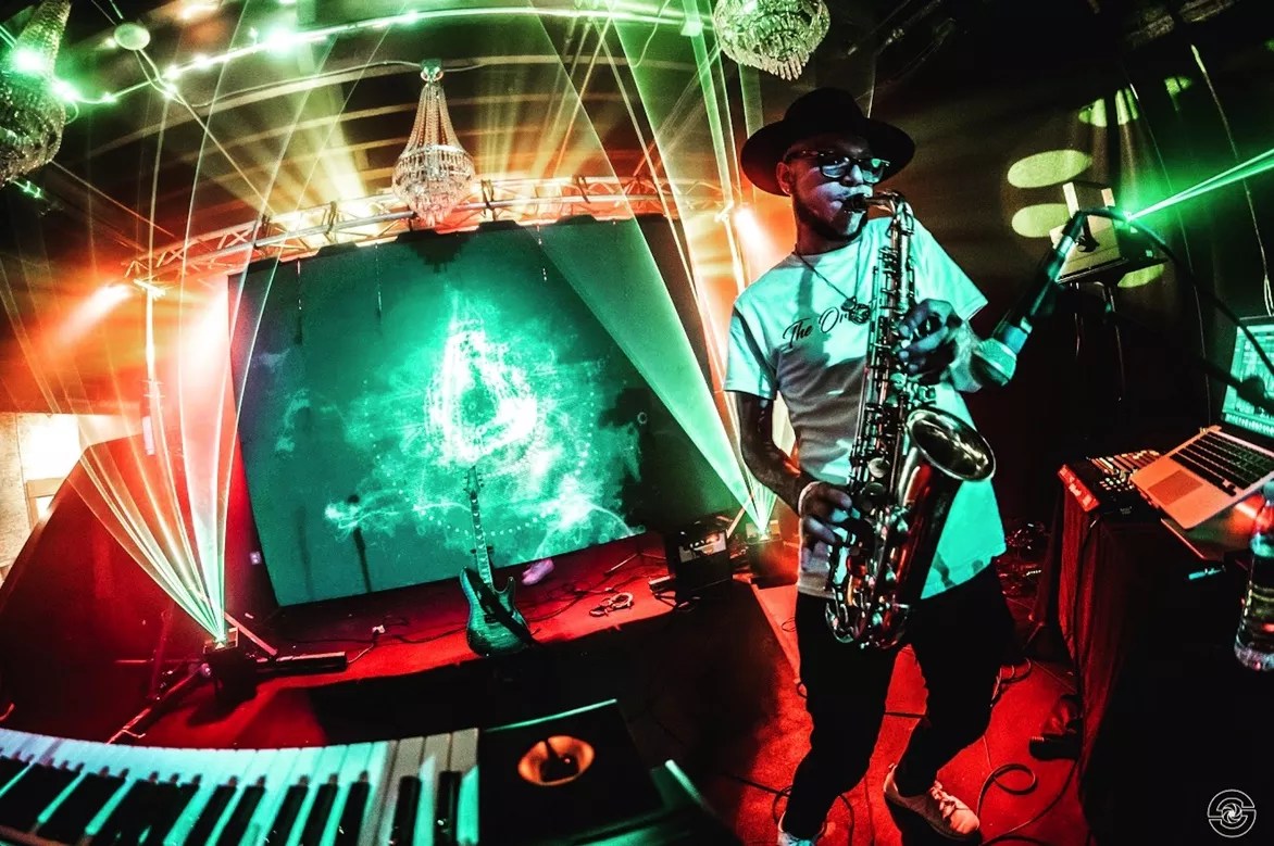 Just scoring tickets to one of his concerts is a major perk. Theis says his live shows are like “Marc Rebillet’s, but without the screaming.” At Meow Wolf, he’ll have both his alto and tenor saxes and his guitar, and he’ll be doing his live electronic looping while rapping, singing and playing his instruments.