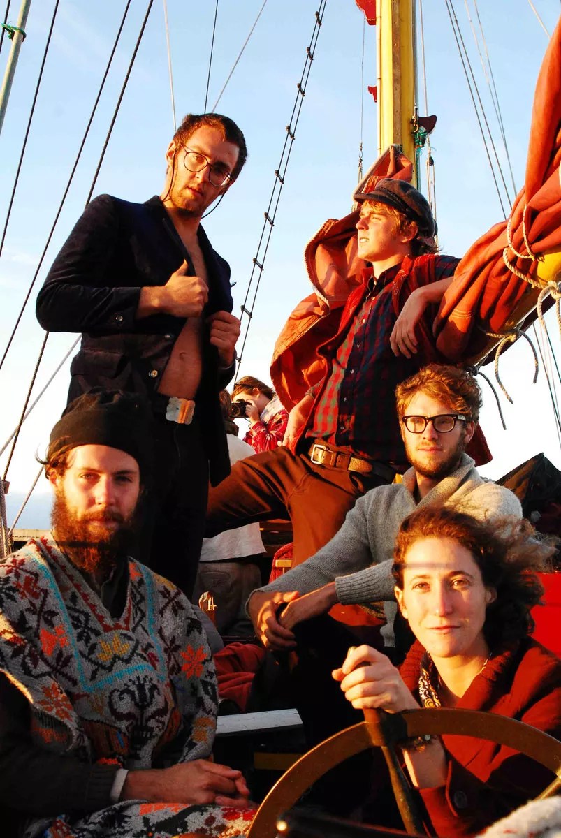 The energetic Front Range-based band Dovekins was born in 2009, when singer-songwriters and multi-instrumentalists Griff Snyder and Stelth Ulvang had the madcap idea to sail from Hawaii to Seattle. Hitchhiking back to Colorado after their failed attempt, they wrote songs and played them at open mics along the way. Back in Denver, they cemented the lineup – which included five members, all rooted in the city’s folk-punk scene.