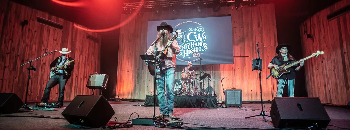 In addition to its original work, CW & Twenty Hands High plays a variety of music from the Allman Brothers Band, Lynyrd Skynyrd, Johnny Cash, George Strait and Merle Haggard, as well as more recent country hits from Chris Stapleton, Luke Combs and Cody Johnson.