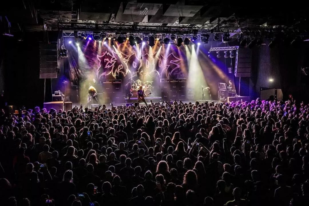 For good reason, too. The group’s 1985 debut, Bonded by Blood, featuring late vocalist Paul Baloff, is a razor-sharp master class in thrash, with songs that have become headbanging anthems over the past four decades, particularly the title track, “Piranha” and “Strike of the Beast.” In all, the Exodus catalogue spans eleven records, including 1989 standout Fabulous Disaster with its MTV hit and fan favorite “The Toxic Waltz,” which has become an unofficial moshing theme song and always gets a “positive crowd response,” as Hunting can experience from behind the kit.