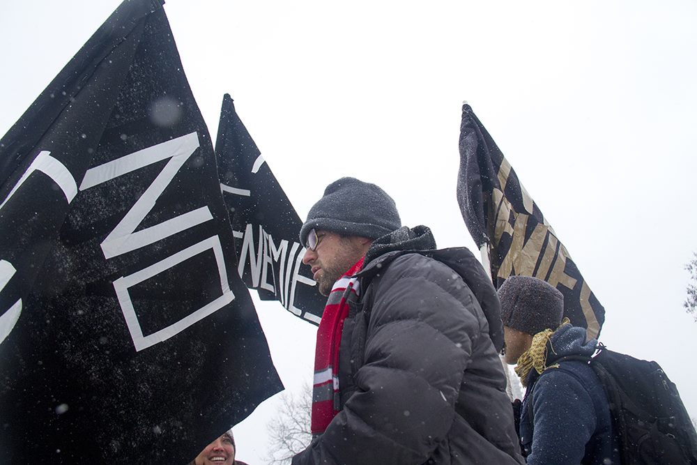 For example, Laurie says he’s been going to vigils held at the GEO Detention Facilty in Aurora pretty regularly. “They’re very intimate,” he says. “You’re fifteen feet away from people who can see you, who you can also see, through the opaque glass that separates you. You can see people making heart shapes with their hands. It’s quite a moving experience. You’re not yelling at the wind. You’re singing for and to people.” He recalls one day when a social dancing club was also there. “They led us all in a few steps of a dance. Everyone has something to contribute.”