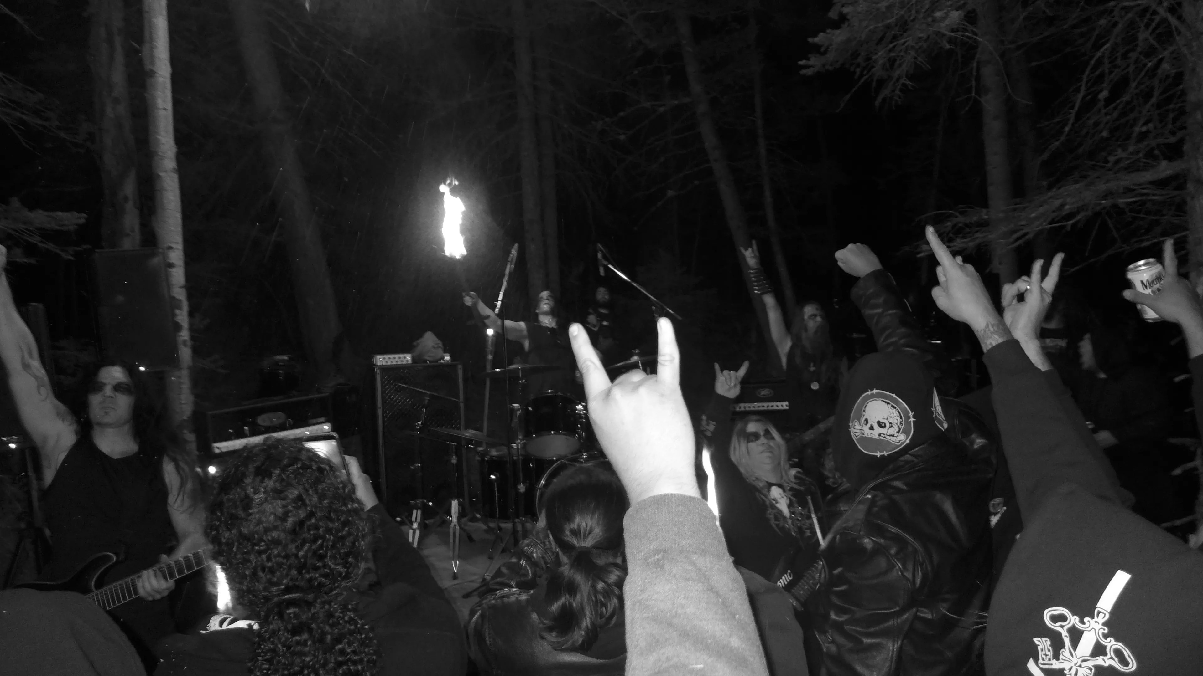 When I arrived at the festival, I could hear the abrasive low end rumble of Demonic Christ. The setting was small, the stage in a clearing surrounded by trees, lit only by tiki torches. Demonic Christ, which has been around since 1992, looked the black-metal part, with the bass player sporting spiked bracers. Vocalist Dana Duffey made a pointed statement about dedicating a song to all the social-justice warriors that weren’t at the show. That surely tongue-in-cheek remark was the only truly political statement I heard at the festival.