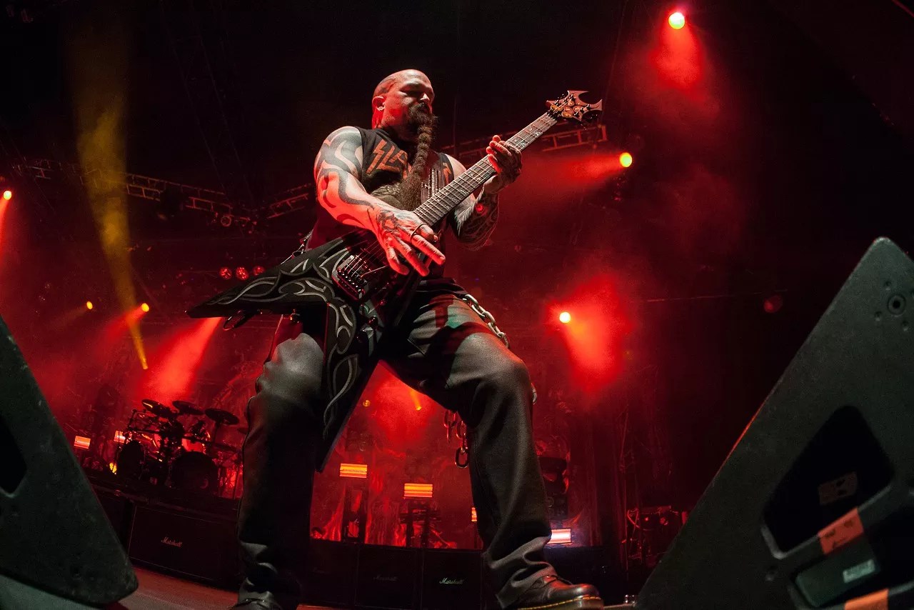 In the past four years, King has been making a lot of it up on his own. Hanneman, who wrote many of Slayer’s classic songs, died after he was bit by a spider and contracted necrotizing fasciitis. During Hanneman’s illness, King took the reins and began writing new material, some of which the group will play tonight, Wednesday, August 2, at 1STBANK Center.