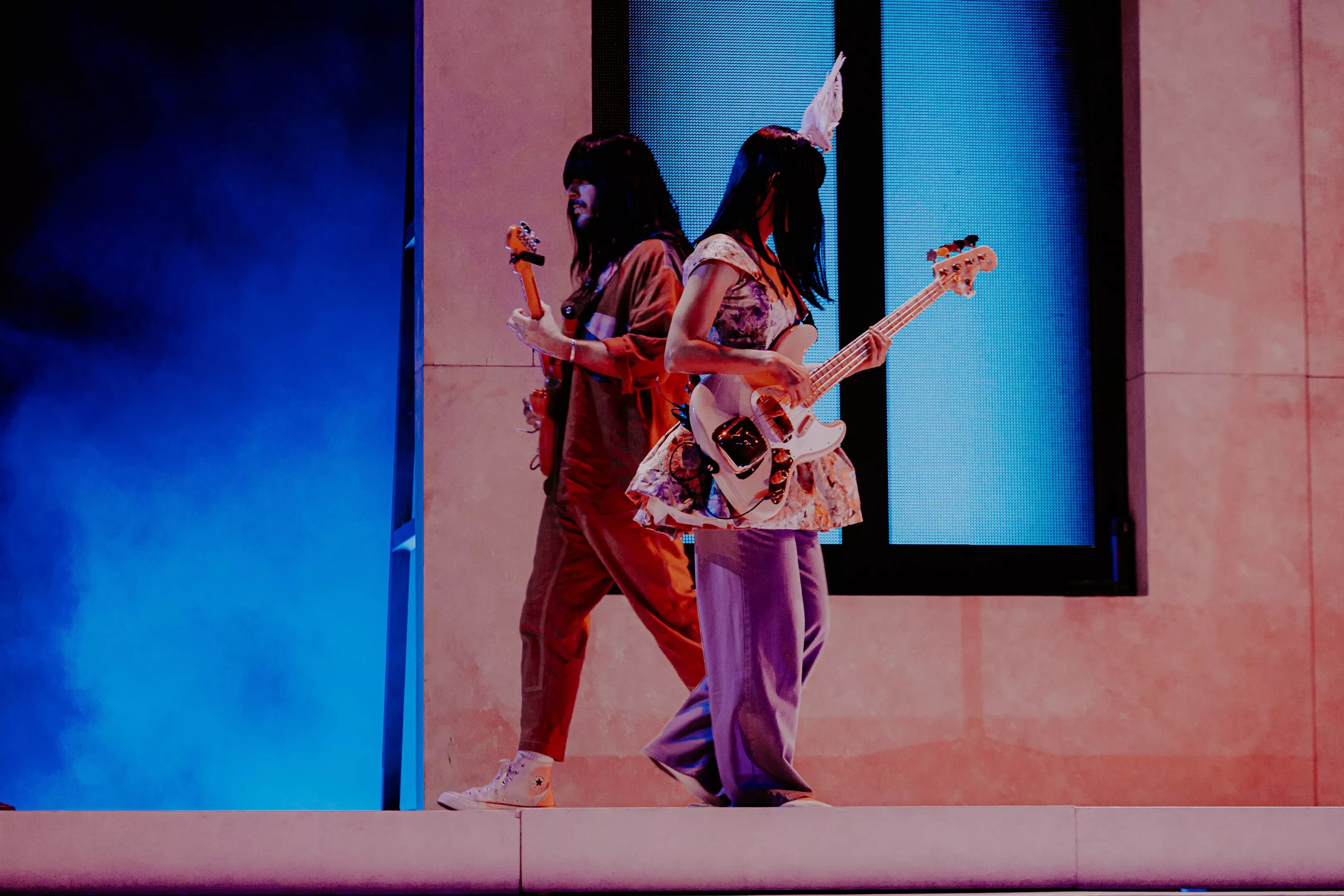 Khruangbin’s Laura Lee Ochoa (left) and Mark Speer (right) play back-to-back.