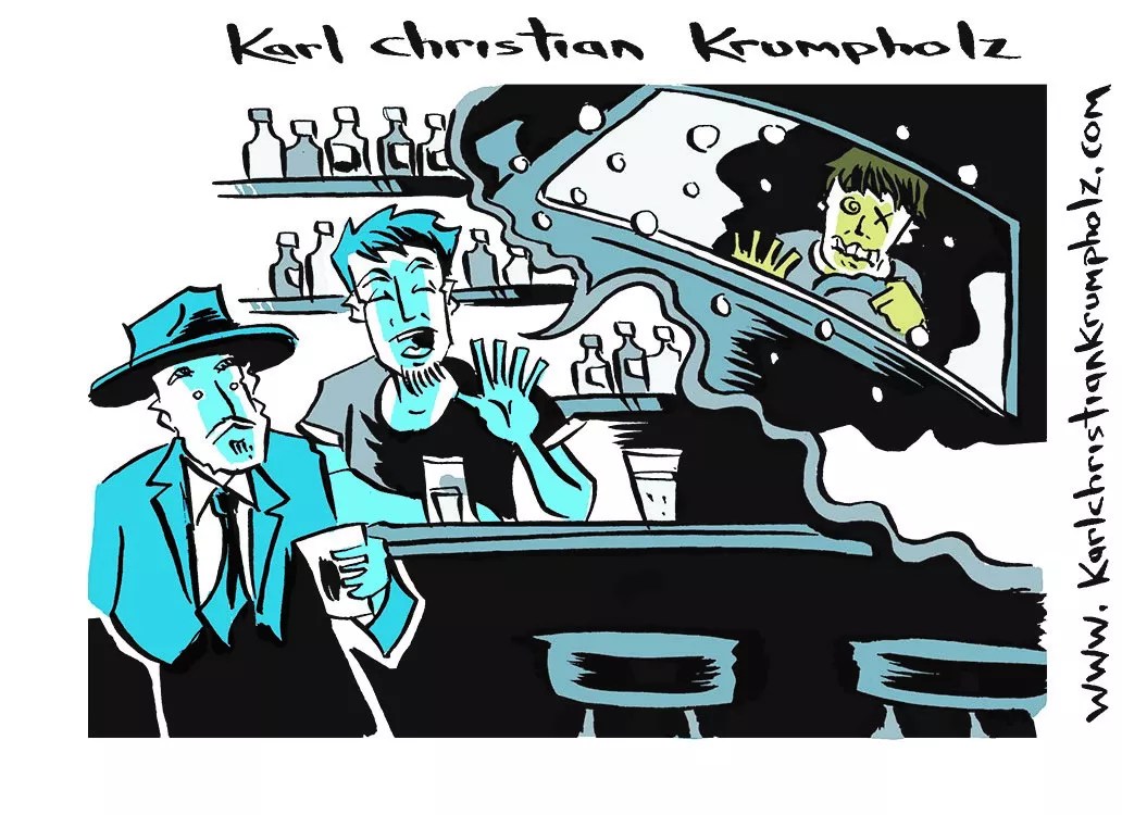 “About a month later, I asked the bartender about the guy’s well-being. He said, ‘Oh, he’s fine…but he’s permanently 86’d.’ It seems that the next time the guy came to the bar, it was once again cold and snowing. At closing time, he walked out the back door, where one of the servers had started her car to warm it up for the ride home. The guy got in the car and drove it to his house. All of this was caught on camera. The cops found the car running in the street in front of the guy’s apartment three blocks from the bar.” Karl Christian Krumpholz