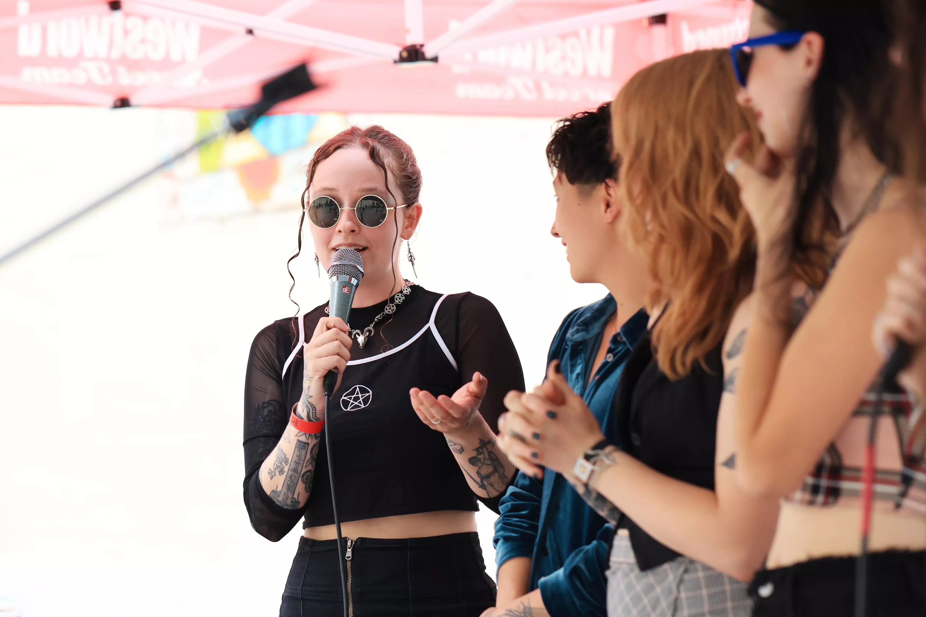 Ahead of the show, the bandmates – Kate Fern (vocals/bass), Hannah May (vocals/keys), Madi Spillman (guitar) and Evan Jeffers (drums/vocals) – were interviewed by Culture Editor Emily Ferguson about their Best of Denver award-winning album, Okay Grandma, Your Turn, as well as their new single, “Overflow.” The band is continuing to make music after a whirlwind Pride month filled with shows, which followed its “Going West” tour in May.