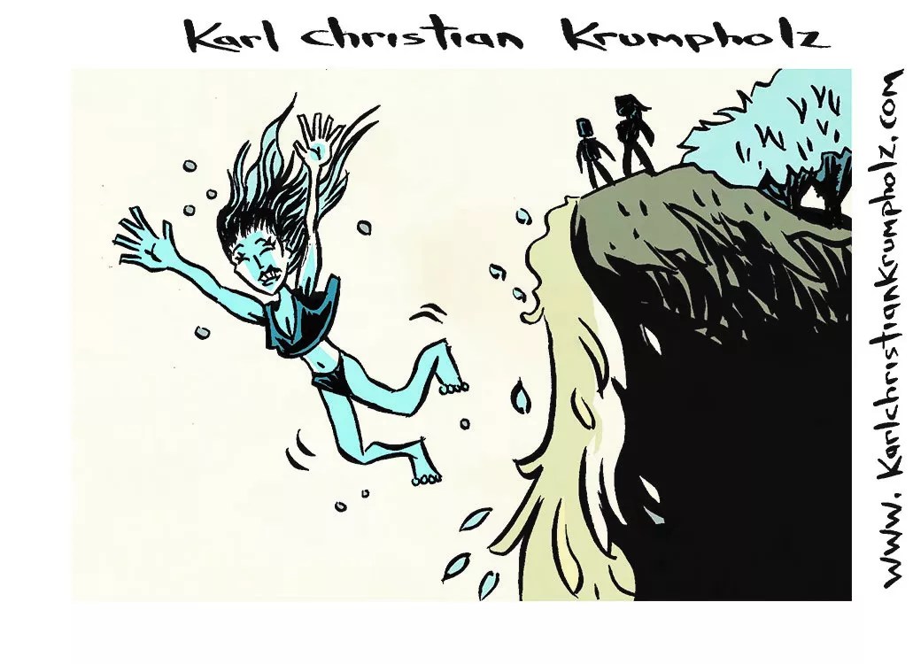 “I didn’t want to jump. It terrified me letting myself go enough to allow only water to catch me below, but younger bandmates convinced me to challenge myself. Removing clothing, then standing almost naked at the edge of a cliff, I looked down and moved to a lower platform only twenty feet from the water. My heart raced, and I began my countdown. Then I jumped. I was flying for a moment before my toes pierced the water. These small moments are why we suffer the grind of the road. I was elated that I had overcome my fear.”