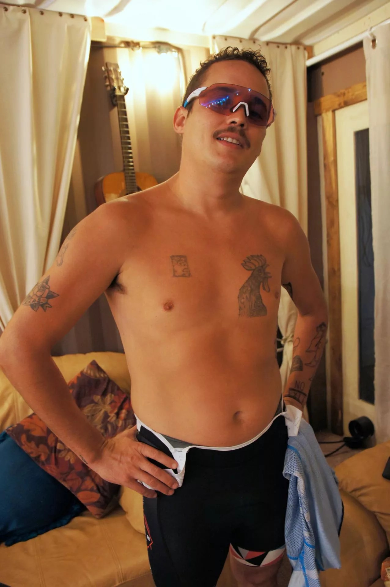 “When quarantine hit, I figured out how to do something different,” Cook says. “I have this insatiable need for both attention and to do something that’s somewhat impactful to the world. And so I figured, ‘What the fuck? Why not put on some bright clothing and make an ass out of myself on two wheels?'”