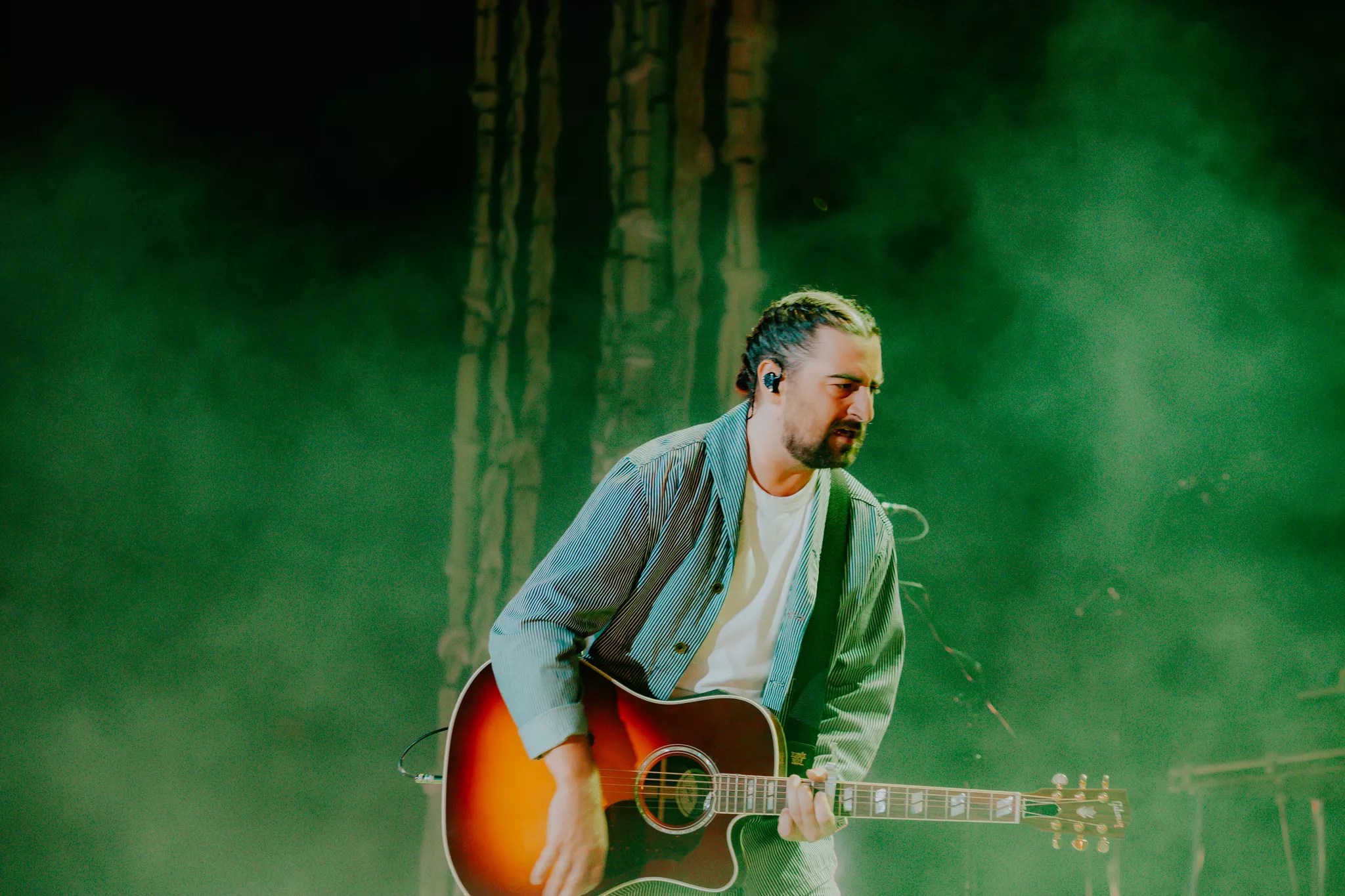 Noah Kahan performing live at Fiddler’s Green Amphitheatre.