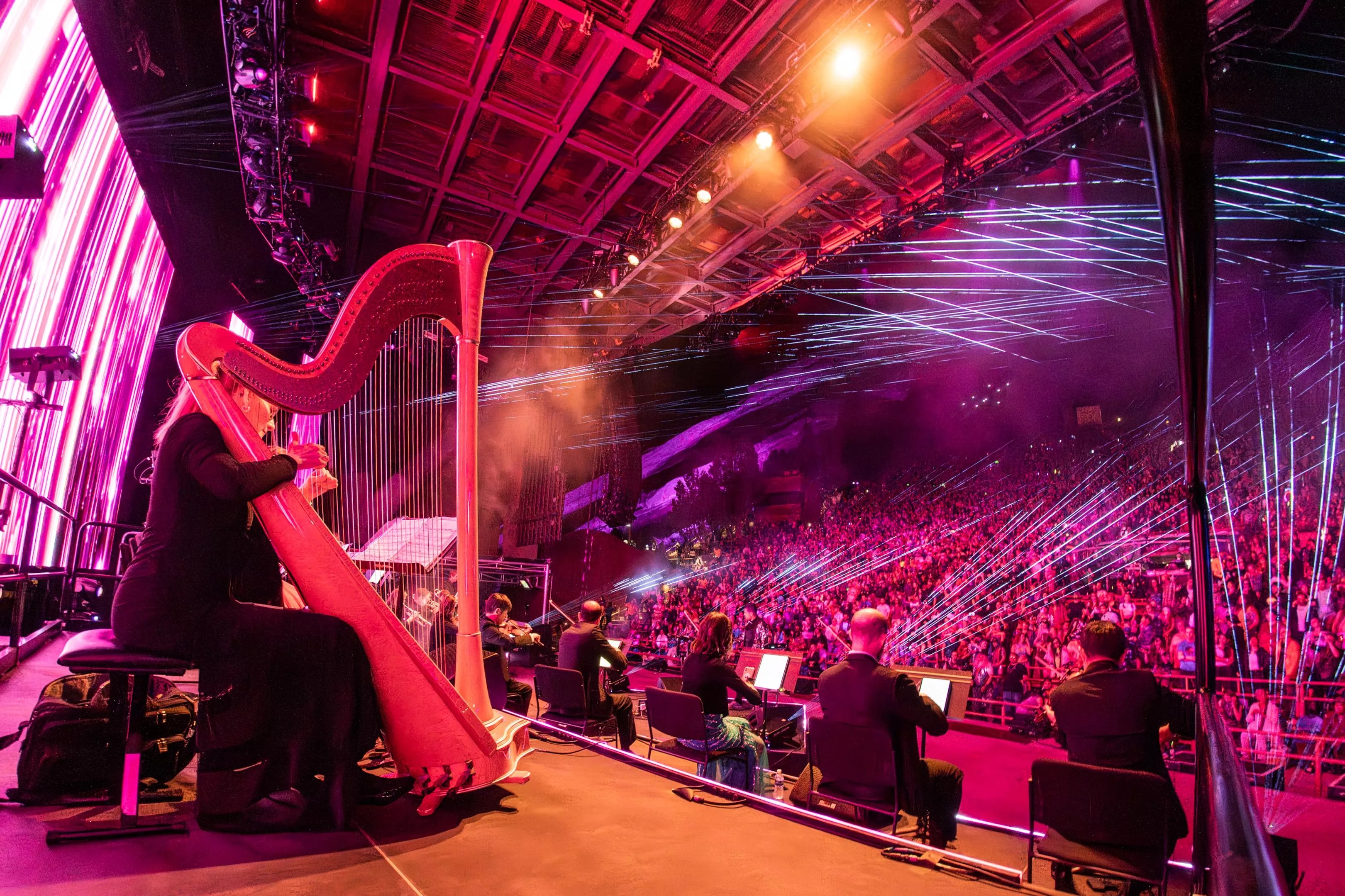 A challenge he proved himself capable of, making this latest release visually stunning as well as heavenly sounding. From the creation of the concept to the song selection to the concert visuals, and then later the mixing of the album, he had his hand in every detail. While ordinarily Davey-Wraight will trigger light and video elements in the moment for his live shows, for the orchestra performance, he programmed those accompaniments ahead of time. “With a show like the Orchestra, I’m deeply involved in conducting or just keeping connected with [the musicians] while the show’s going on,” he explains, “because it is so intense for people like that on stage.”