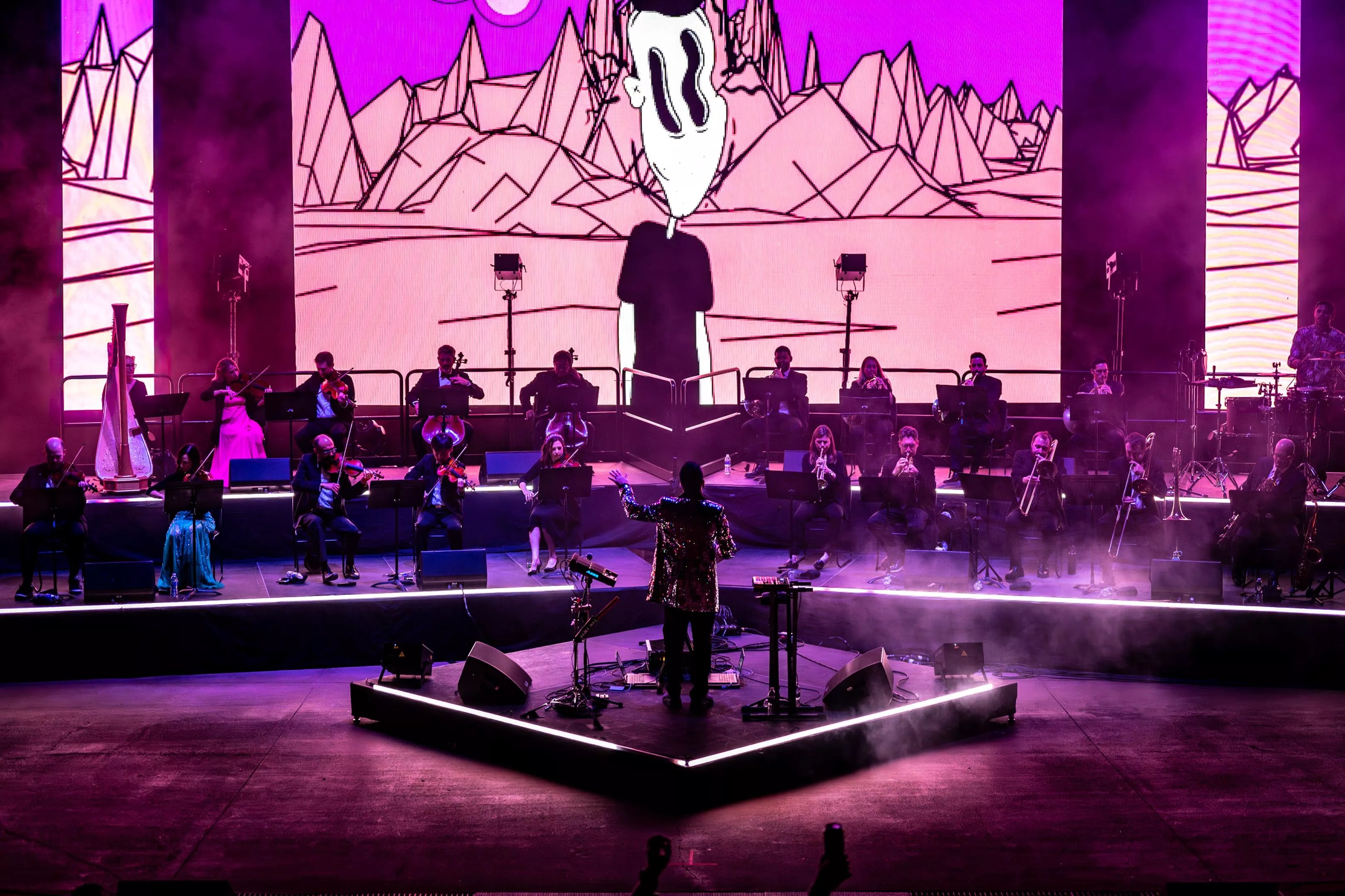 “That moment of walking on stage is extremely exhilarating and terrifying at the same time, and it’s quite different because I’m not facing the audience a lot of the time,” he continues. “It’s about actually letting the show take over. We purposely had me pretty dark. The orchestra could see me, but I wasn’t meant to be the focus point; a lot of the time it was meant to be the show. Because a lot of the time it’s about that singular person on stage, but I wanted it to be about the entire experience and even the audience, because we had encouraged them to dress up as well. We wanted everyone to be a part of it.”
