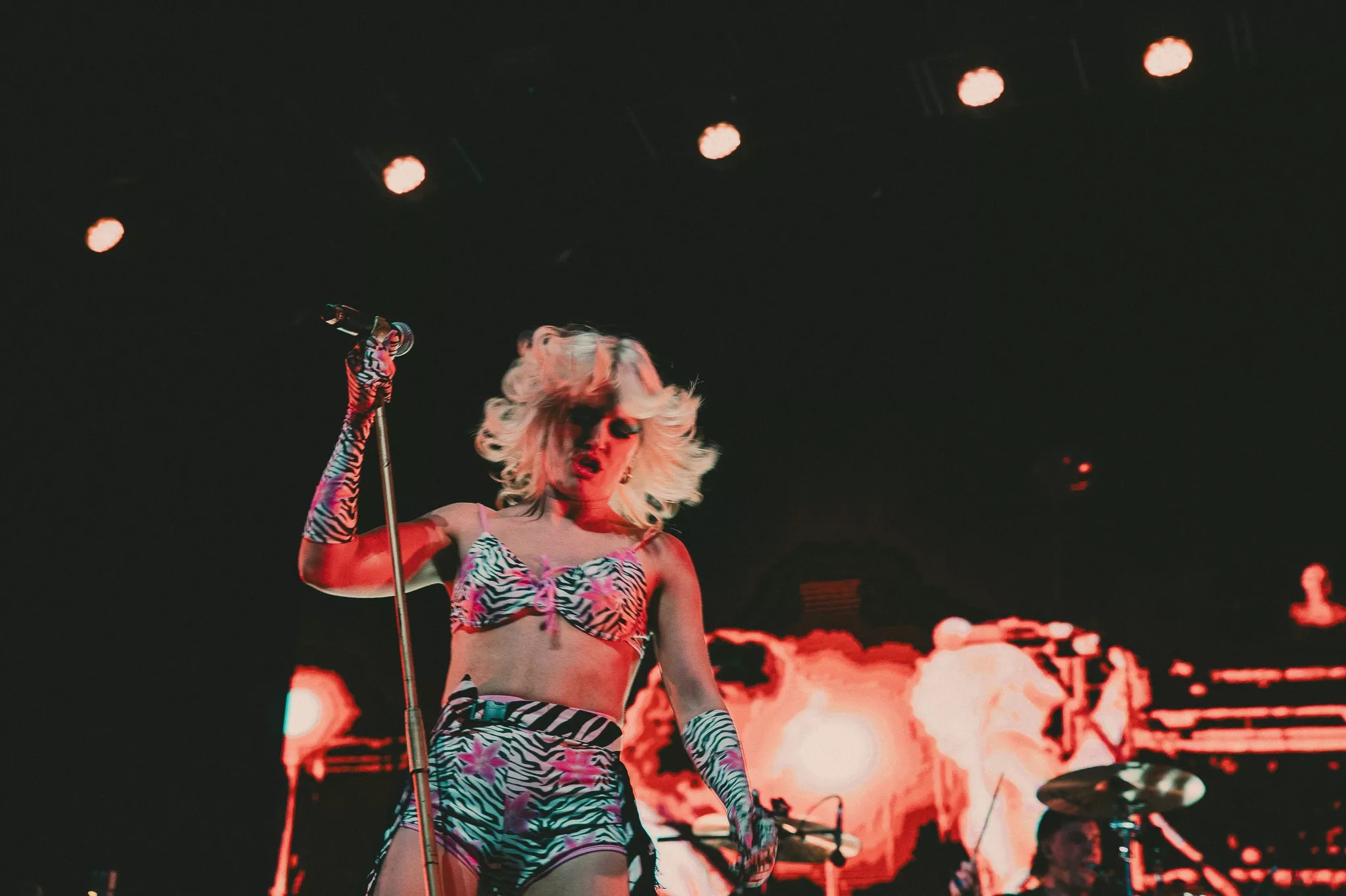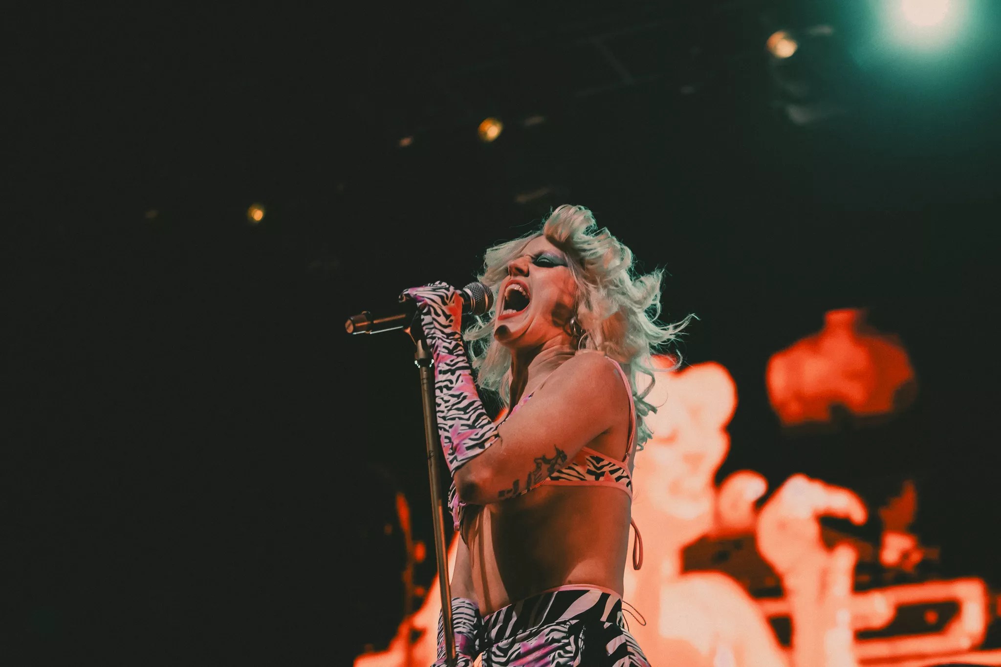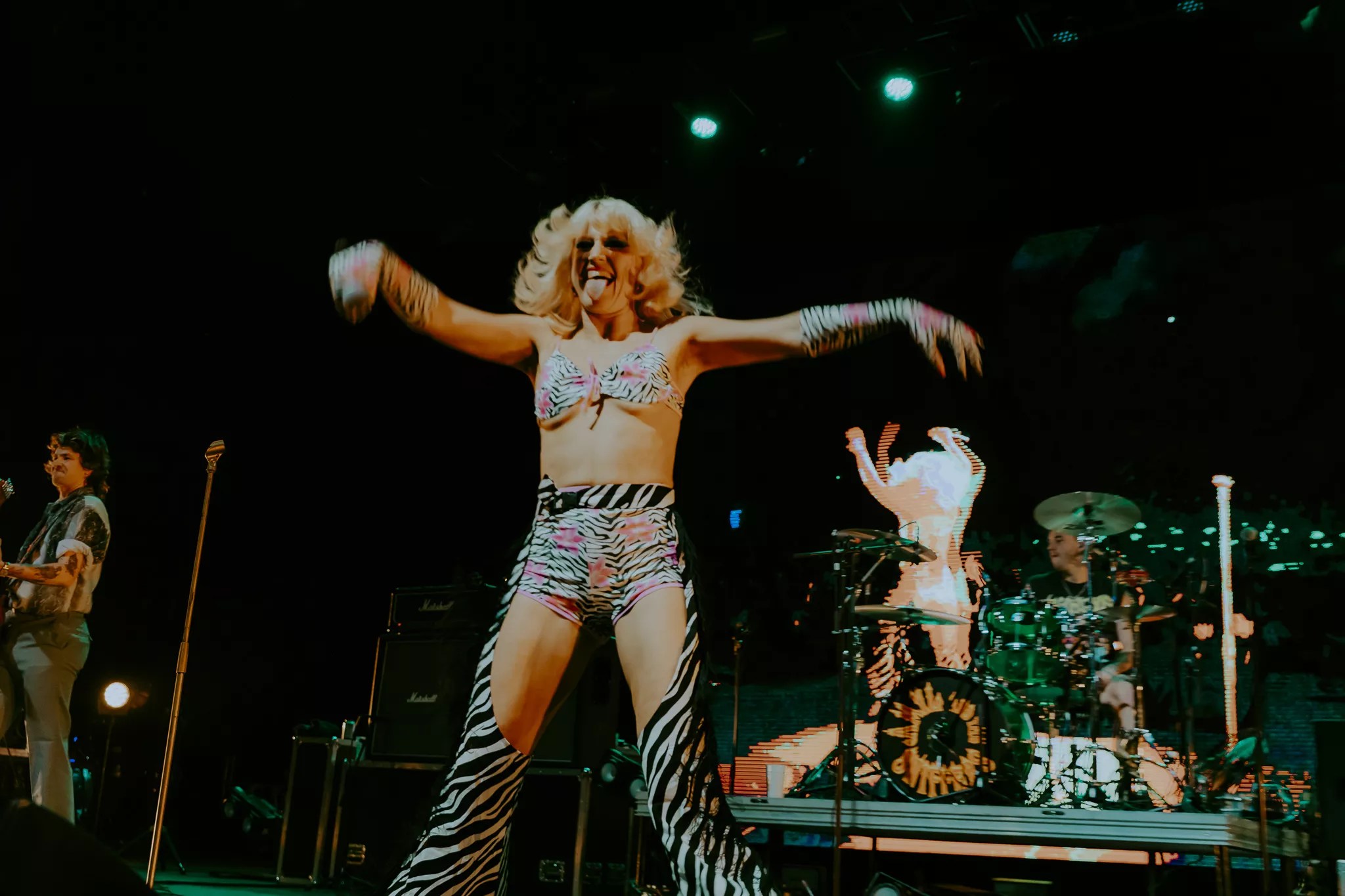 The band is renowned for its high-octane live shows, characterized by intense energy, audience interaction, and Amy Taylor’s commanding stage presence.