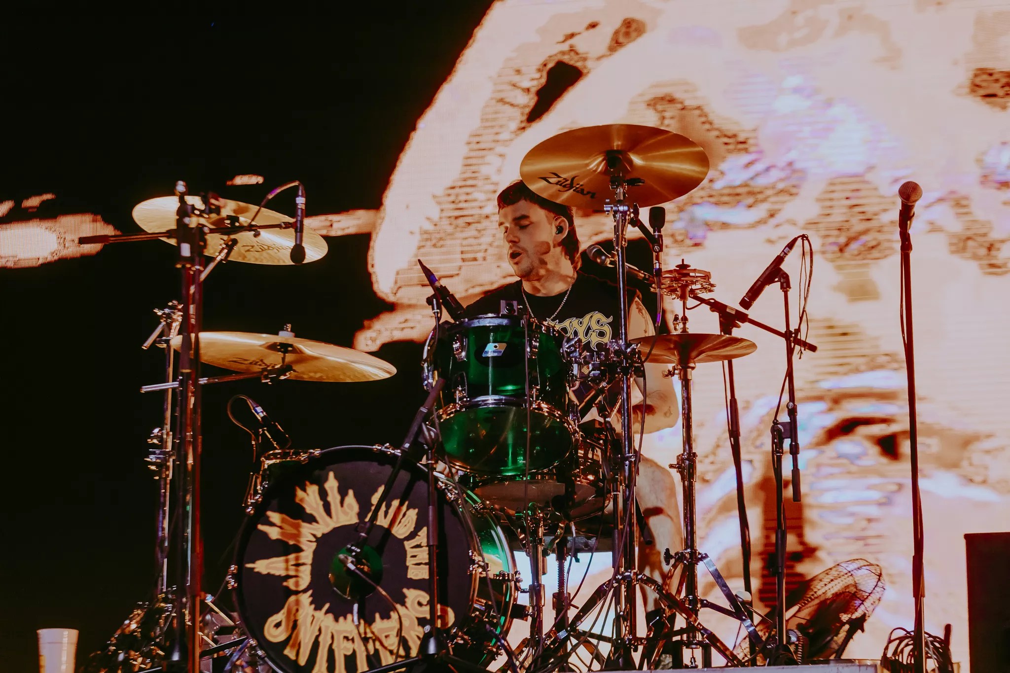 Bryce Wilson, Drummer of Amyl and The Sniffers, takes in the crowd at Mission Ballroom.