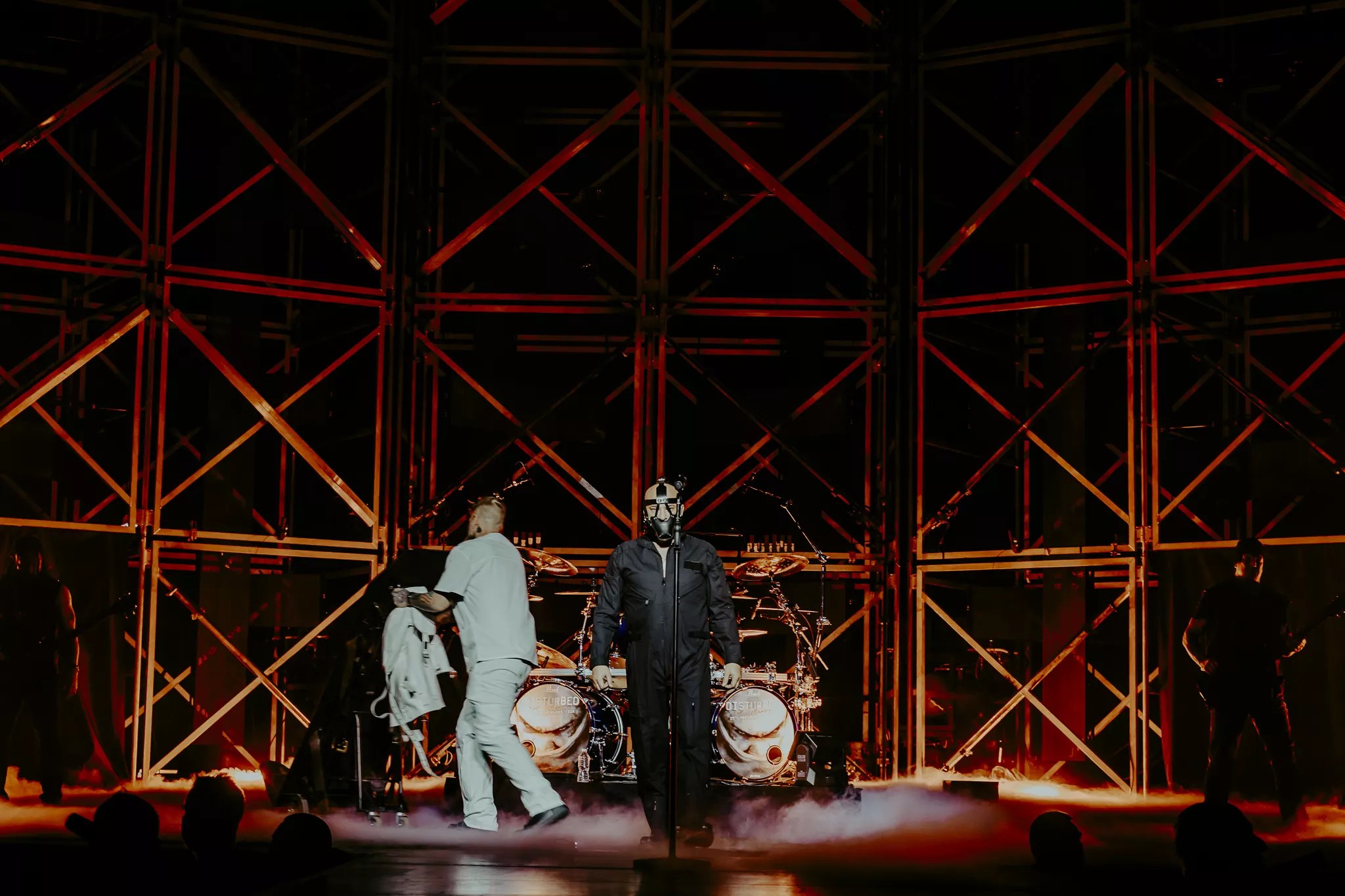 Disturbed’s performance kicked off with David Draiman being brought to the stage in a Hannibal Lecter costume.