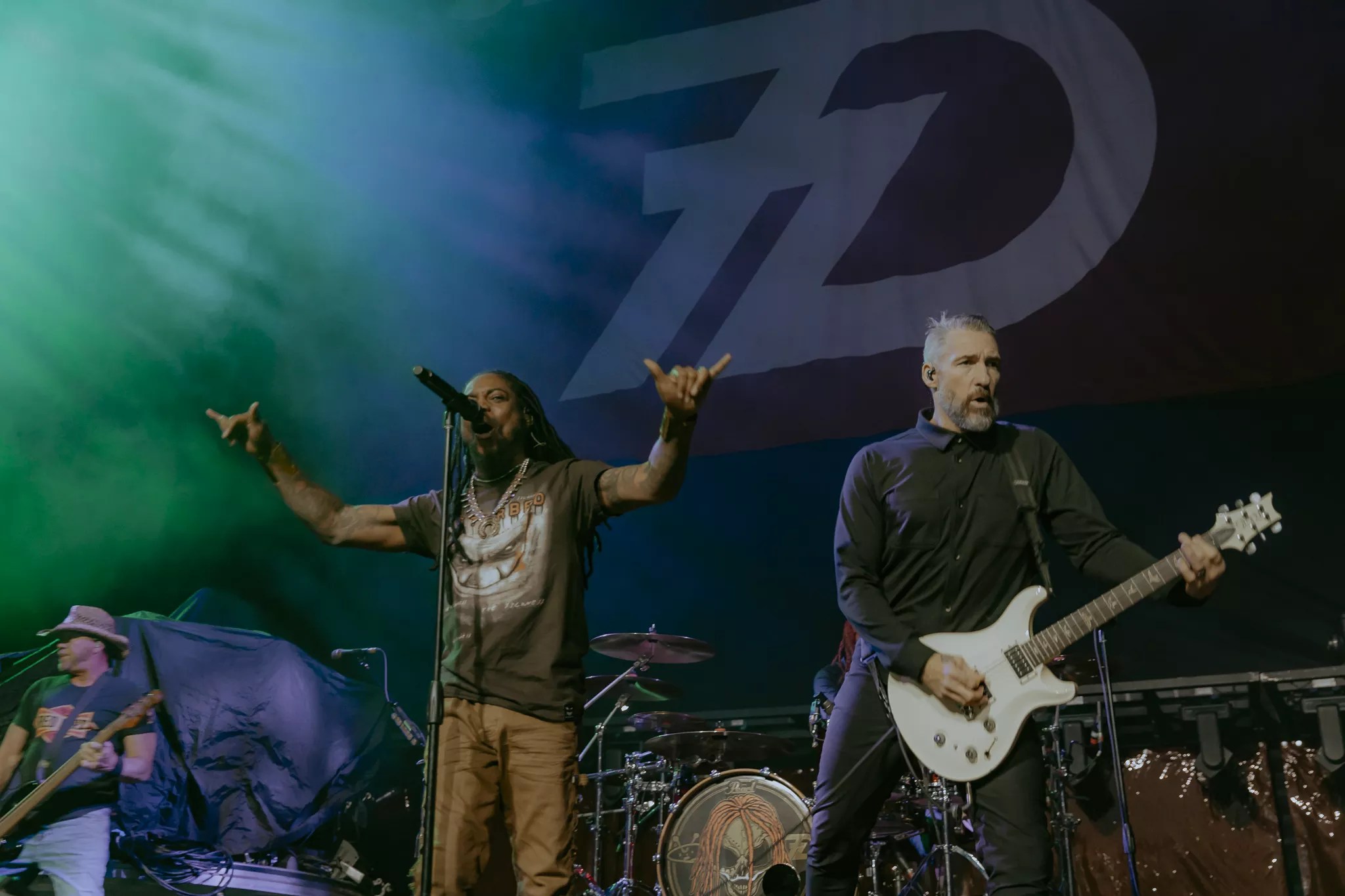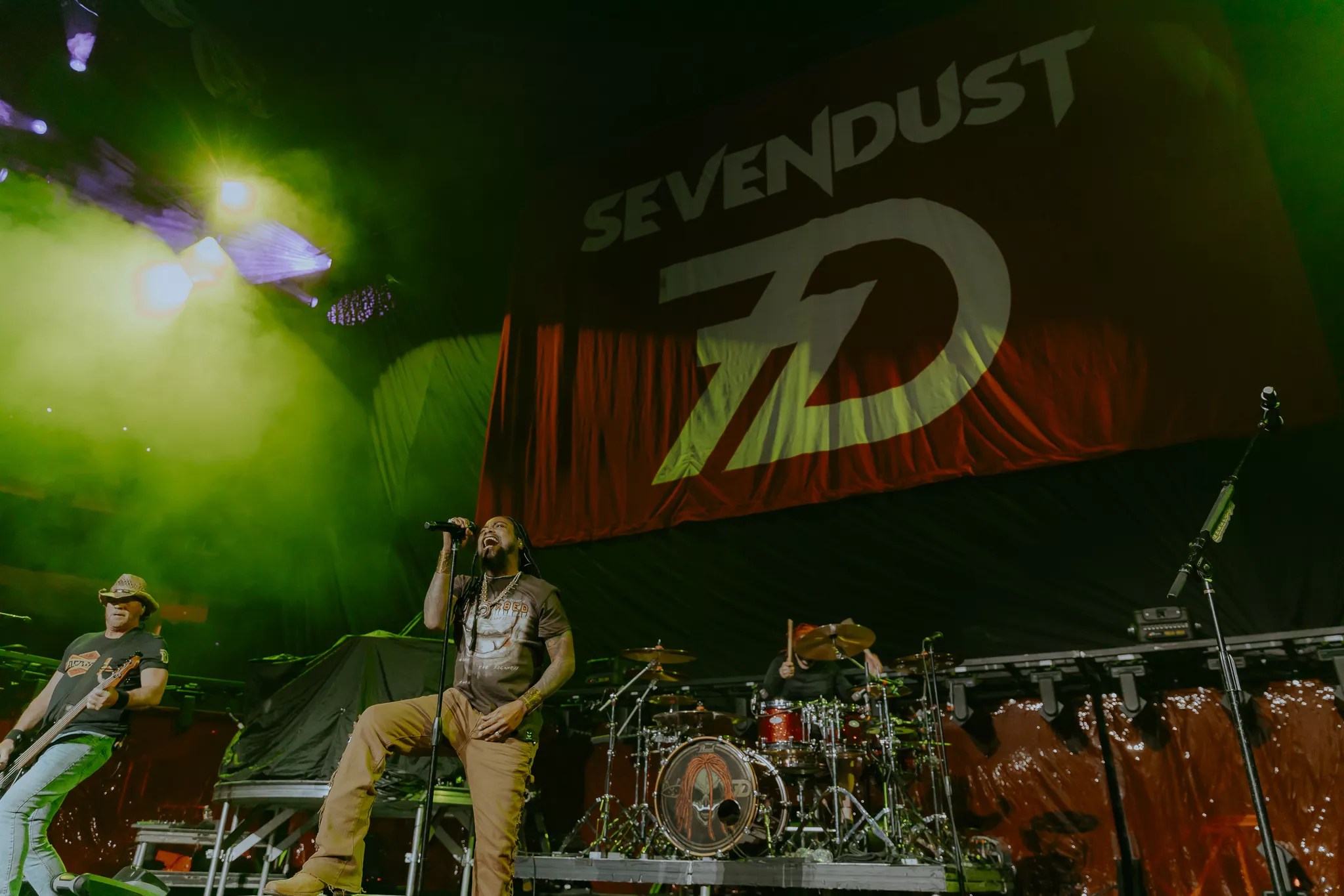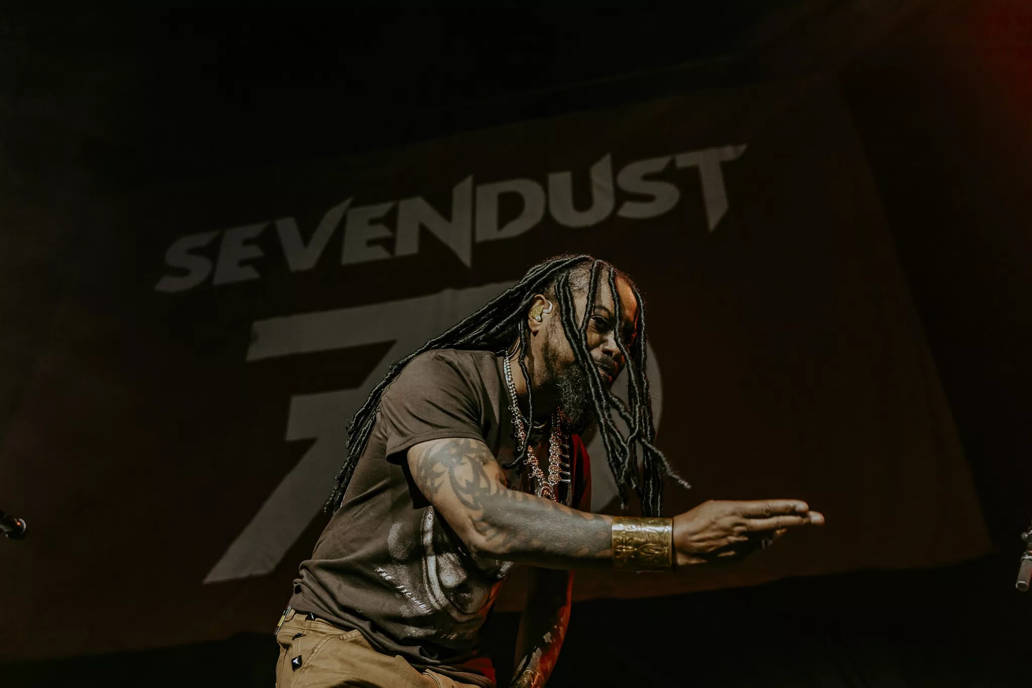 Lajon Witherspoon’s (Sevendust lead vocalist) distinctive and powerful vocals are a hallmark of their sound.